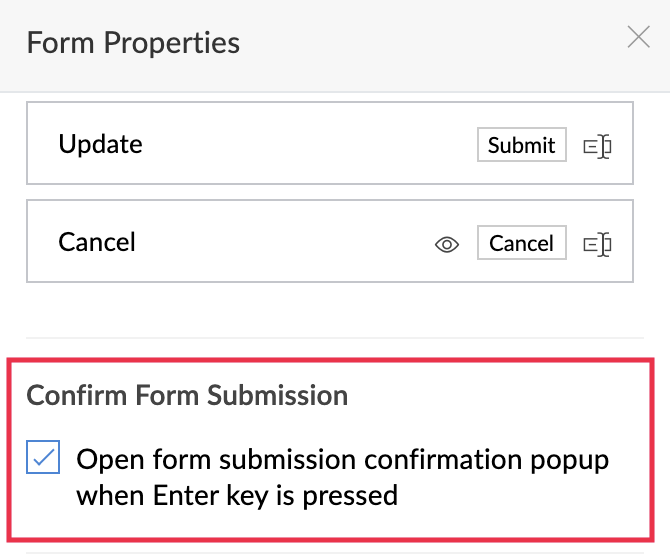 Learn about the Confirm Form Submission form property that allows you (super-admin/admin) to ensure that your users don't accidentally submit forms in your Creator applications upon clicking Enter/Return keys on their devices.