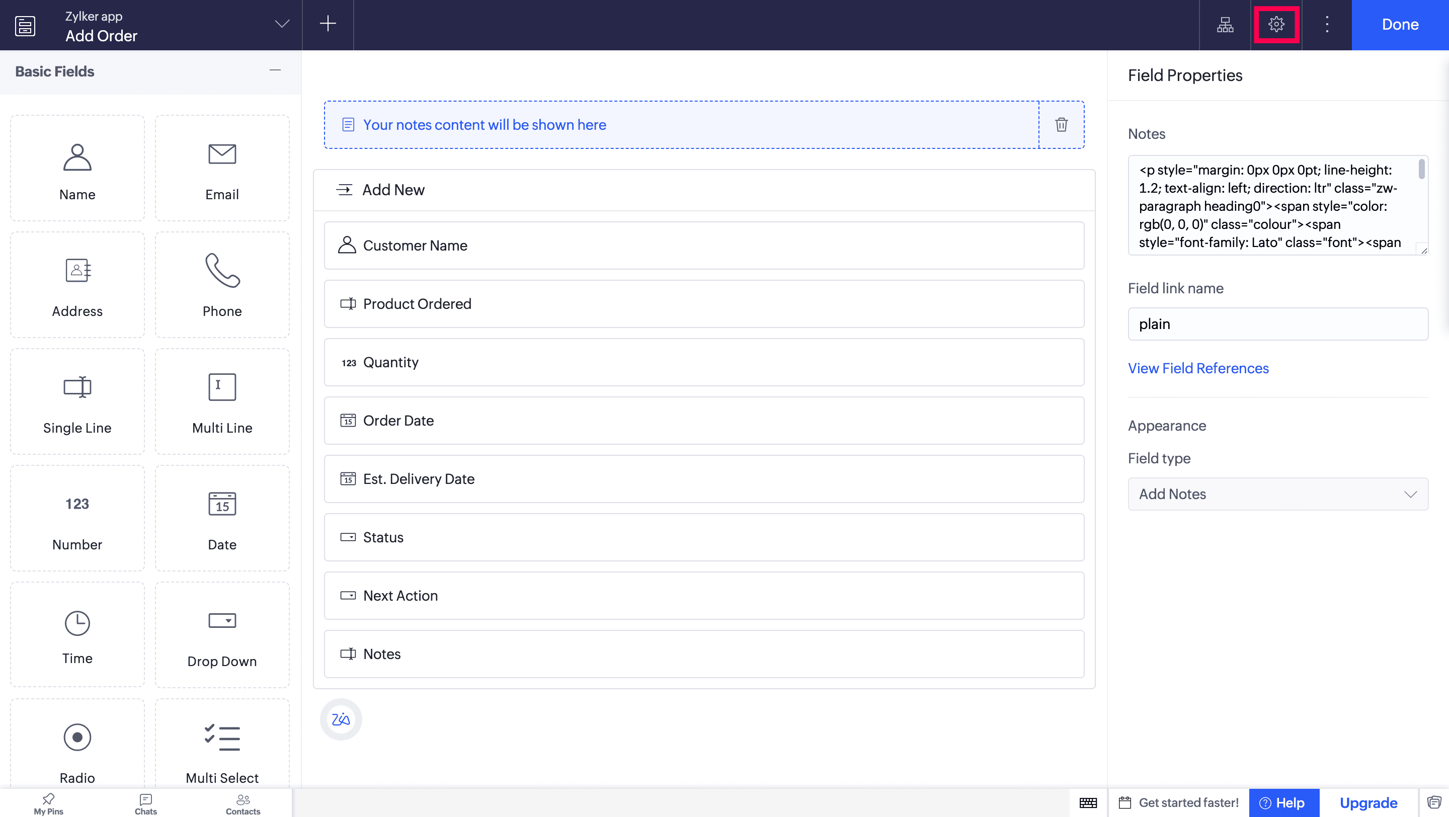 - Open the form builder.