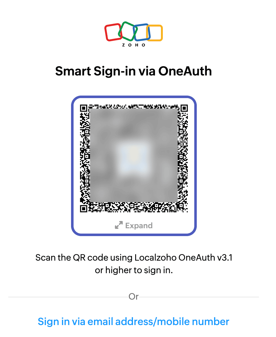 Smart Sign-In provides a secure, password-less way to access your Zoho account using the Zoho OneAuth mobile app. This method helps protect against phishing attempts by eliminating the need to enter passwords.