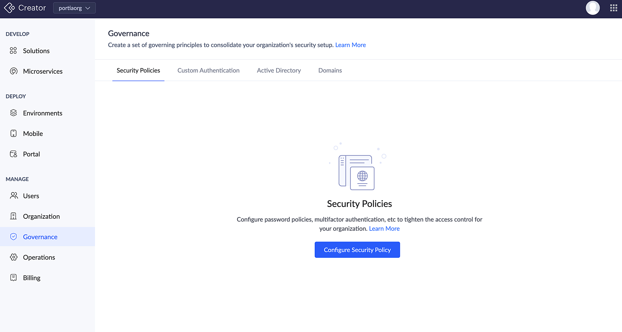 - Security Policies can be accessed only in the paid plans of Creator.