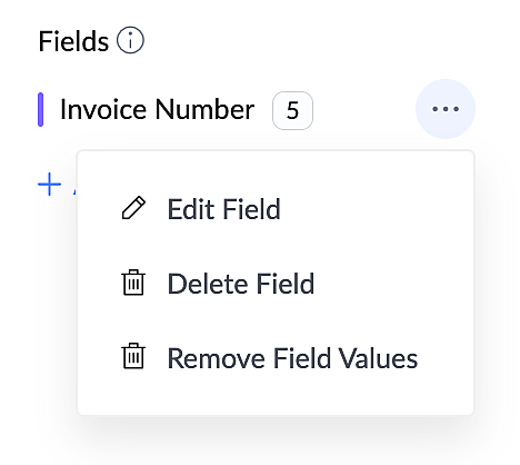 - You can click the horizontal ellipsis beside a field name to edit/delete the field or to remove the field values in case you've incorrectly added any fields.