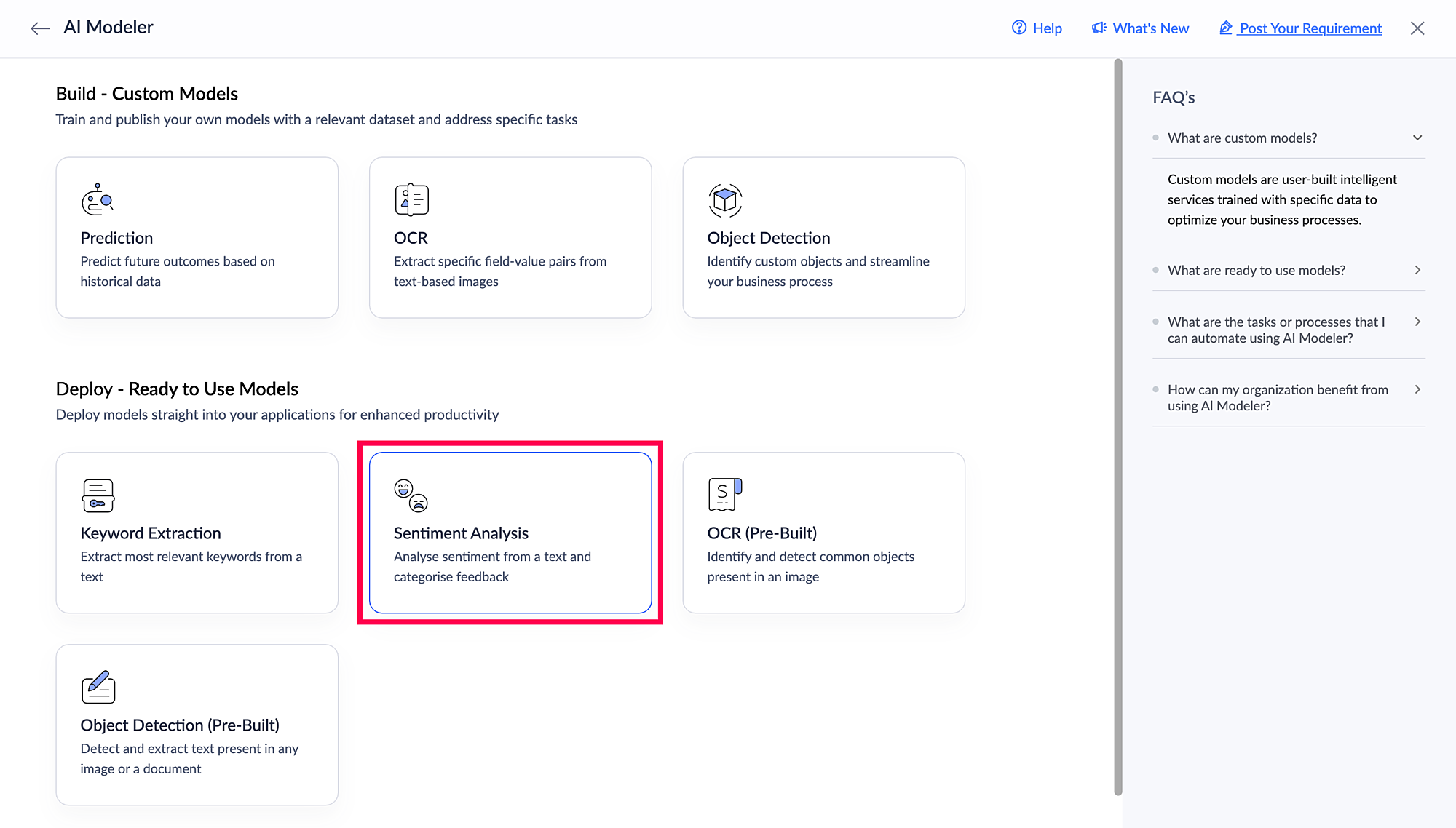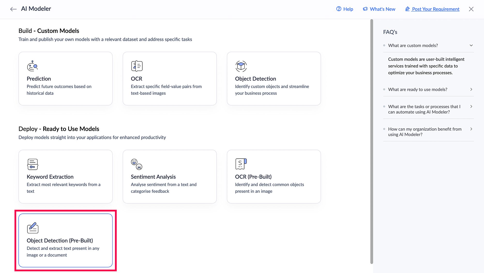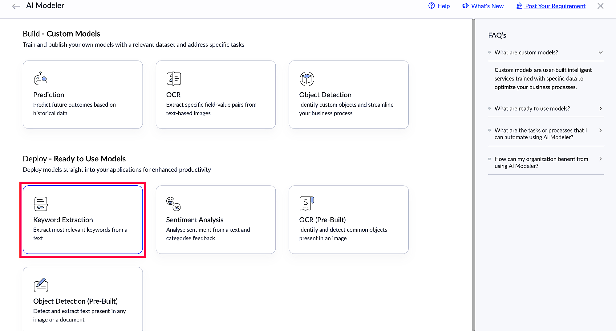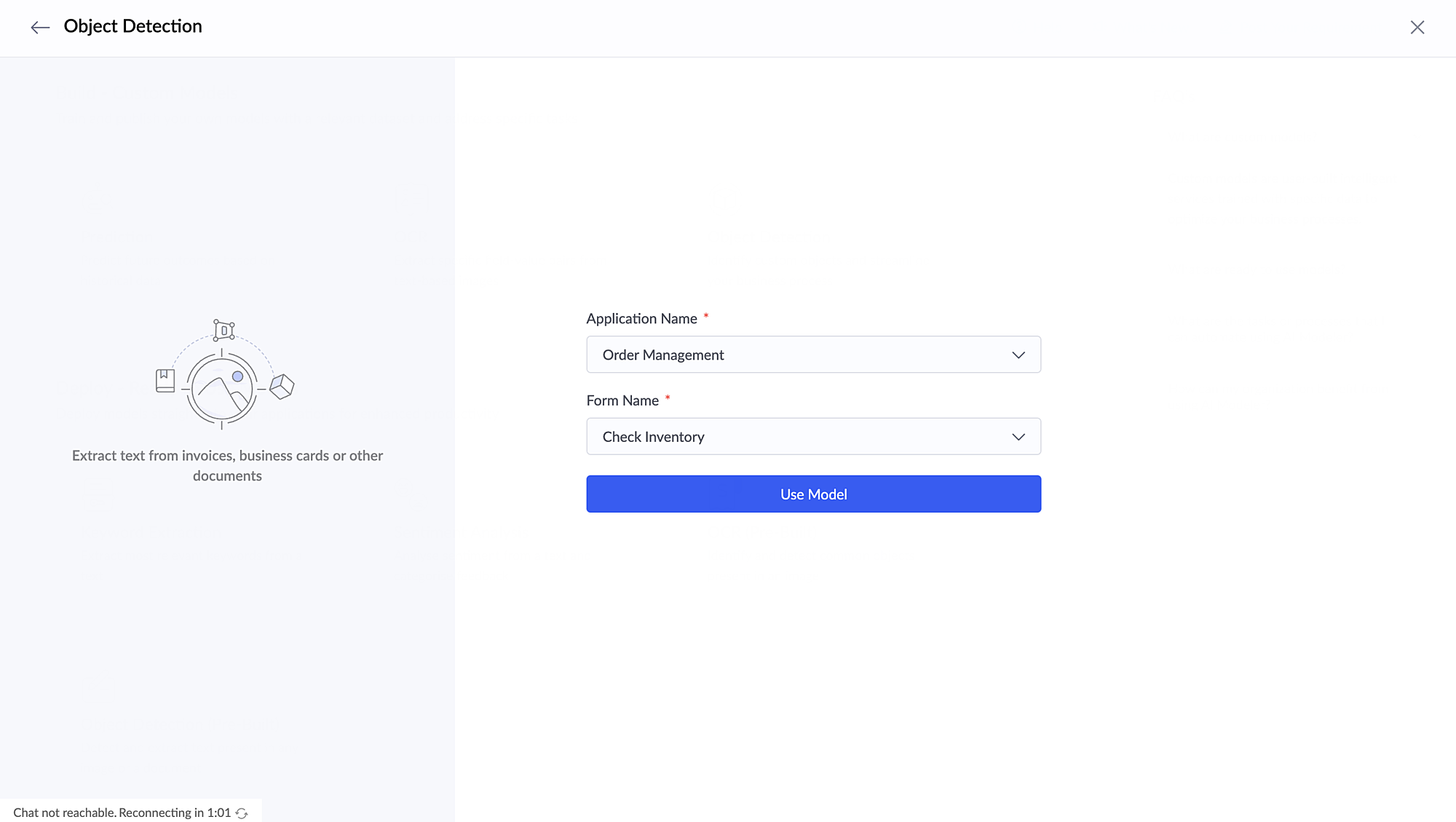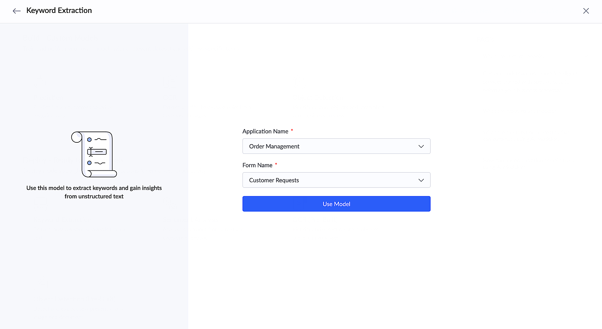 Besides the available ready-to-use AI models, Creator also provides facility to build custom AI models to satisfy your unique needs. Learn more