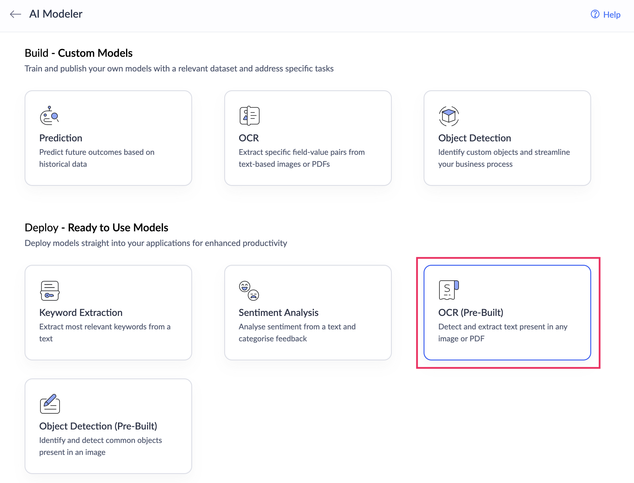 Currently, there are four ready-to-use AI models available which can help you transform unstructured data into structured data that's machine-readable: