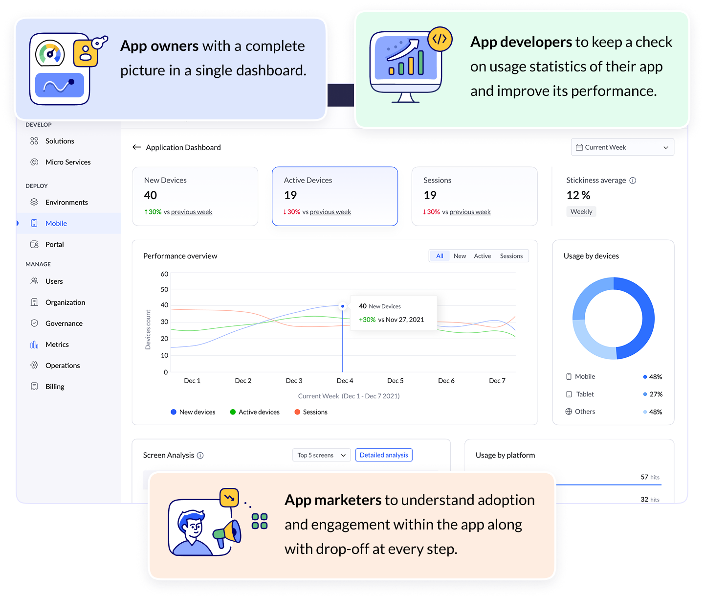 in-app metrics and understand how their app is performing, analyze usage trends, and optimize app health.