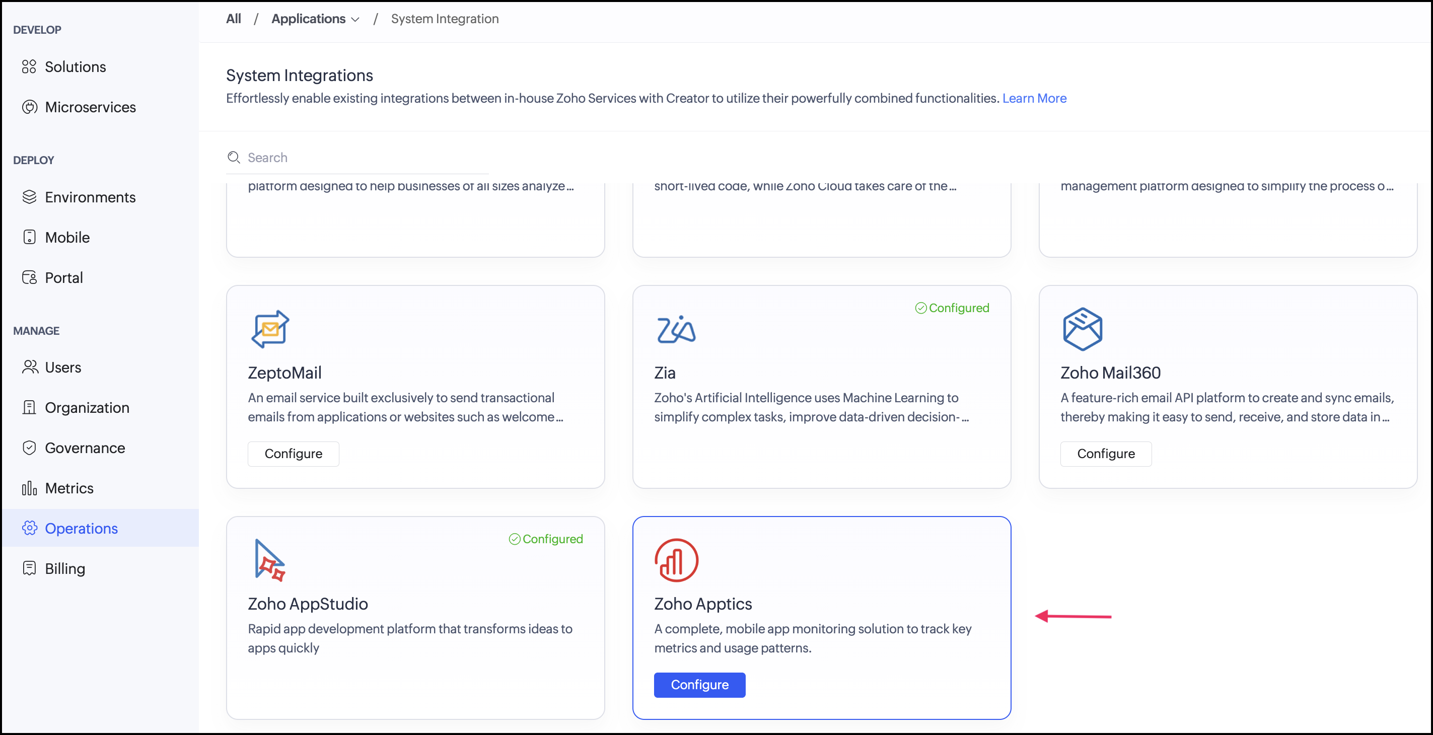 - Zoho Apptics system integration.