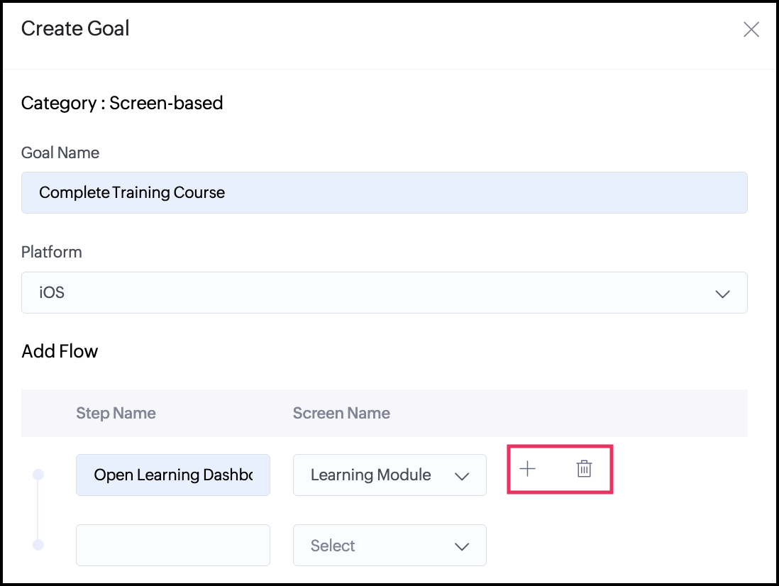 Note: Currently, you can only create screen-based goals.