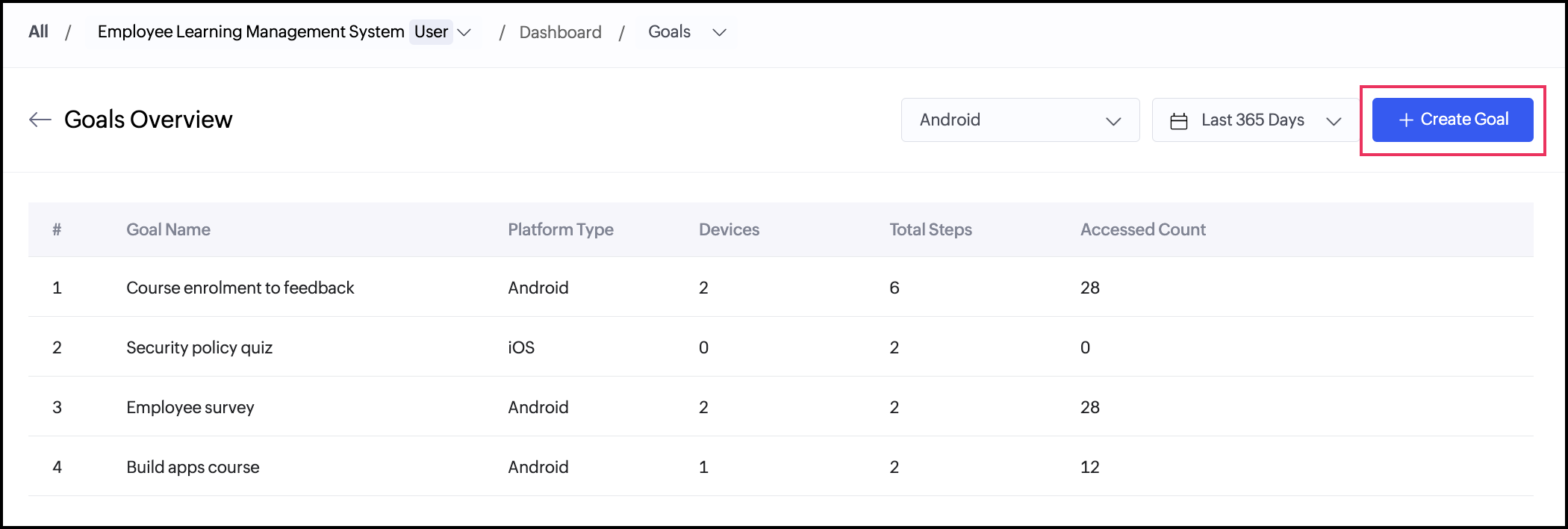 1. Navigate to the All Goals dashboard.