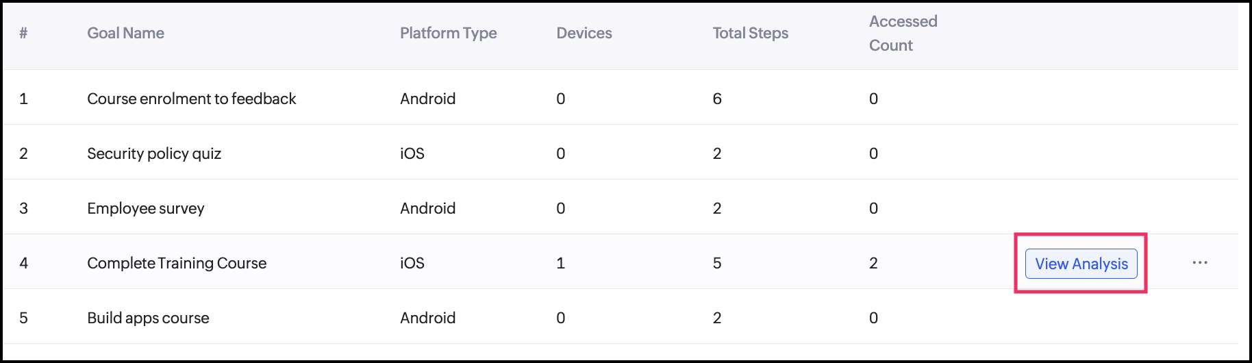 Note: A deleted goal will no longer generate funnel analytics.