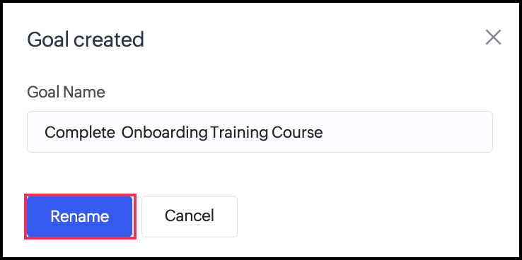 - Rename: The Goal Created popup will appear, where you can only edit the name of the goal.