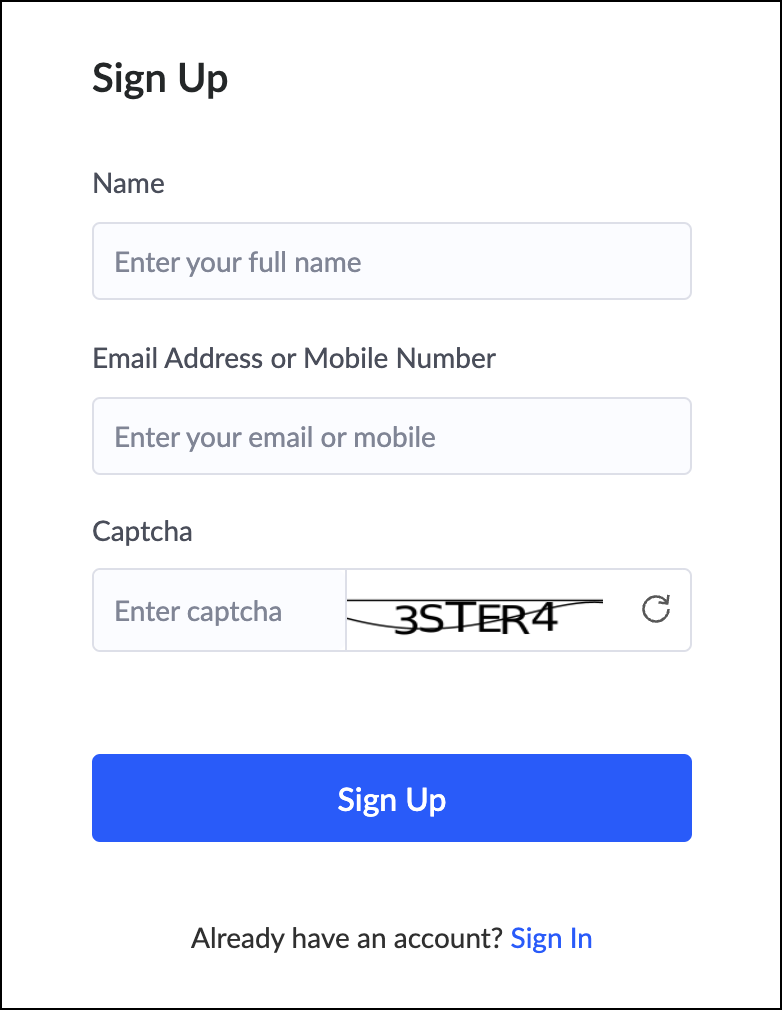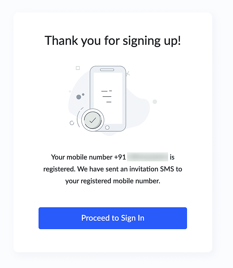 The configuration of mobile OTP will prompt a subtle change in the UI flow during sign up and sign in.