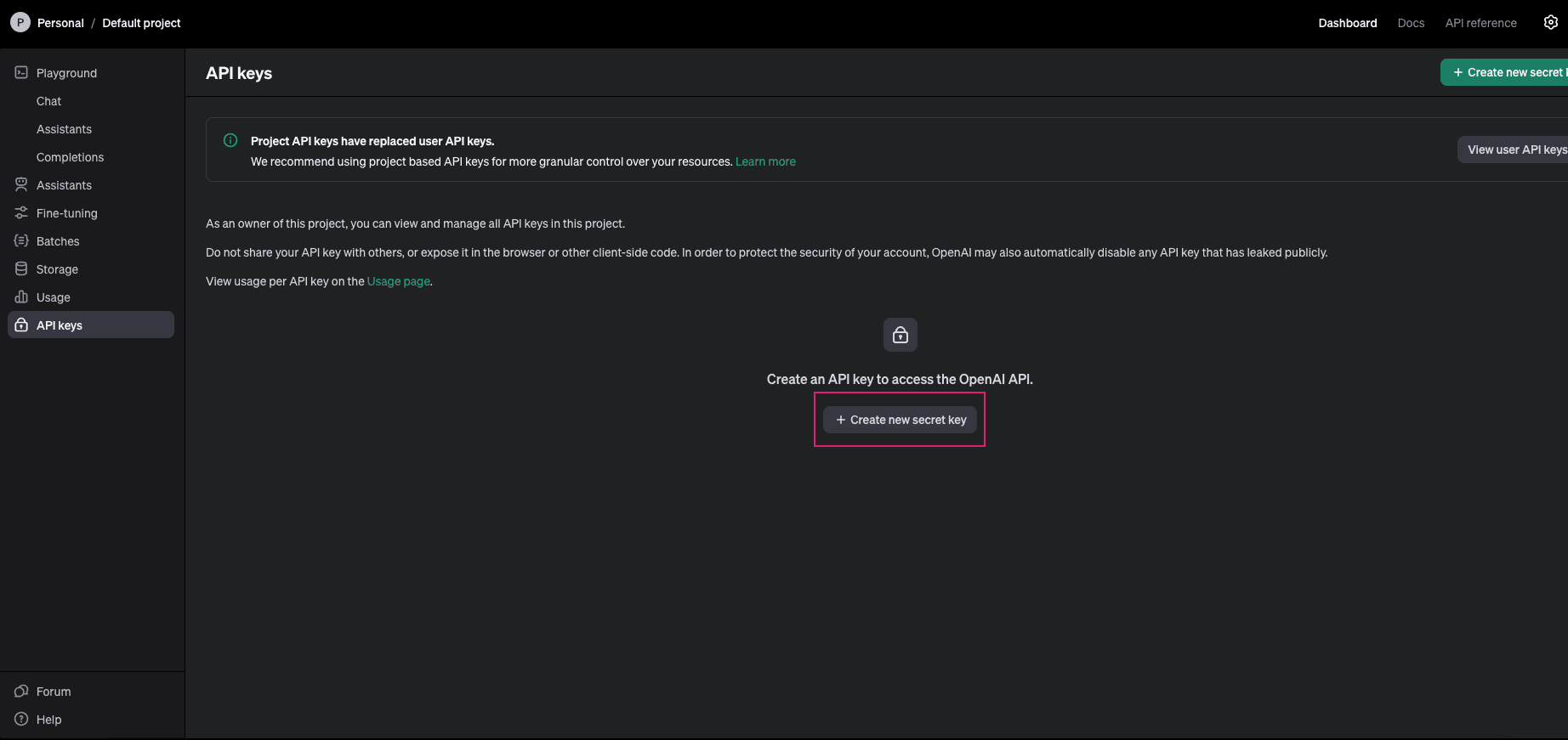 If you have already added an API key, then proceed to step 7.