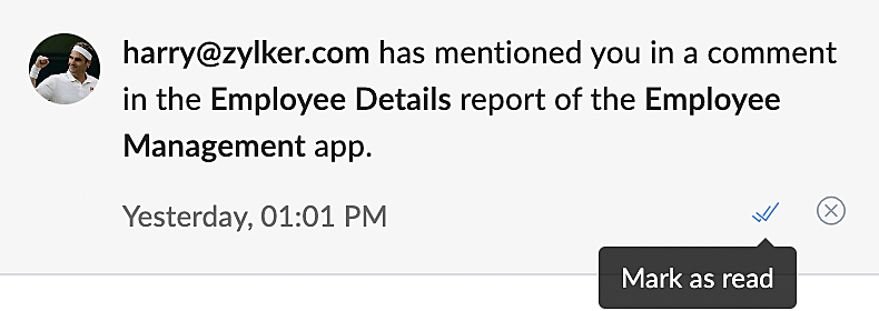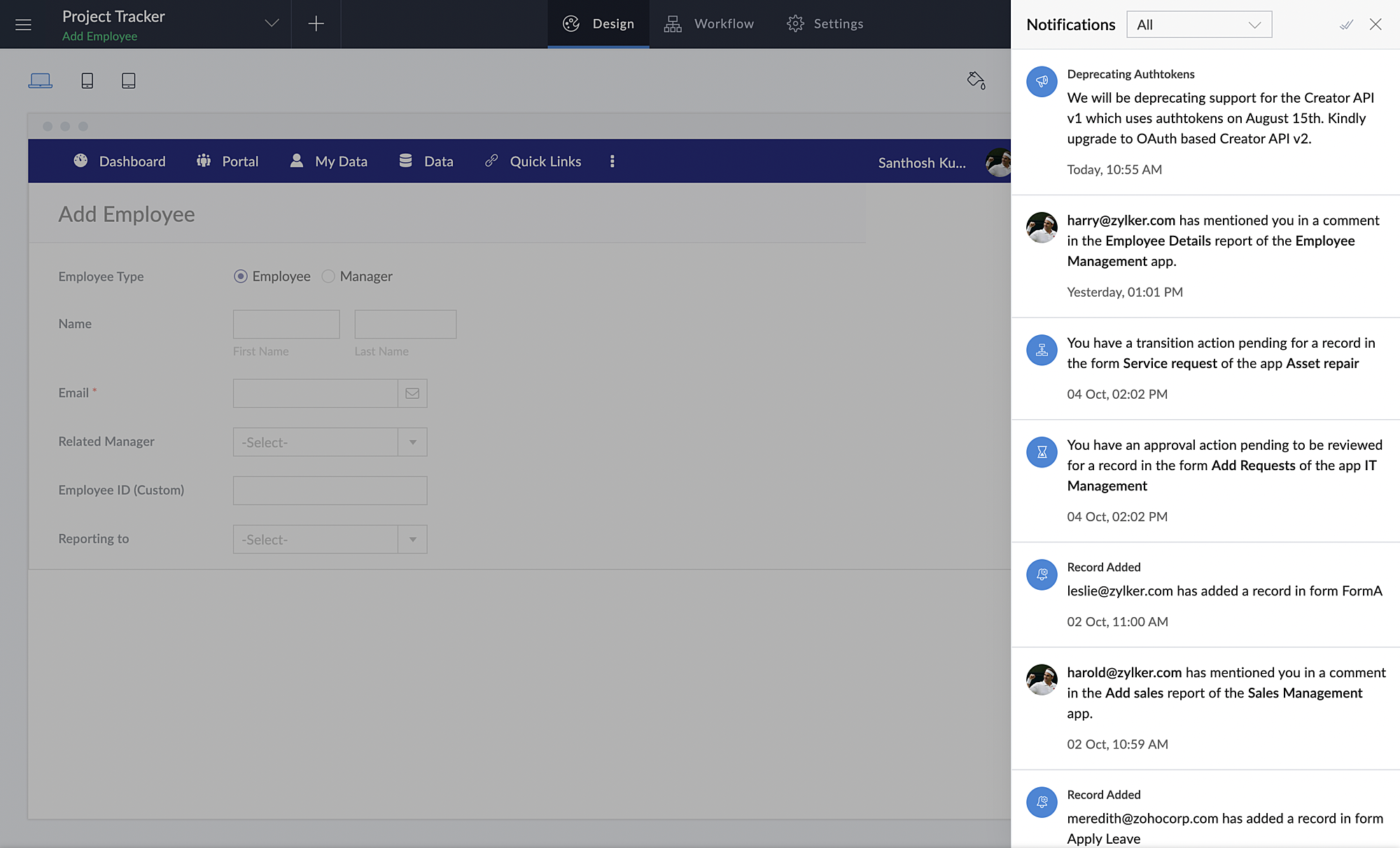 Important announcements and updates - When you have crucial updates related to your account. Zoho Creator will send you notifications regarding data loss warnings, deprecation of features, account management, and more.