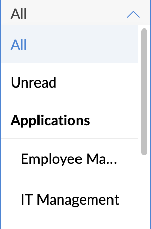 Notifications can be filtered based on certain criteria, including Unread and Application specific . The latter will show the notifications concerning the selected app.