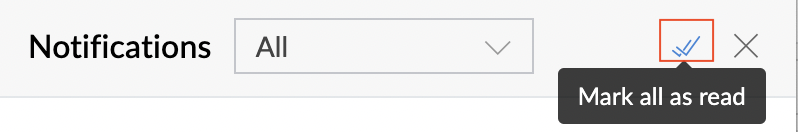 To mark all as read in the Notifications pane, click the Double tick in the upper-right corner of the pane.