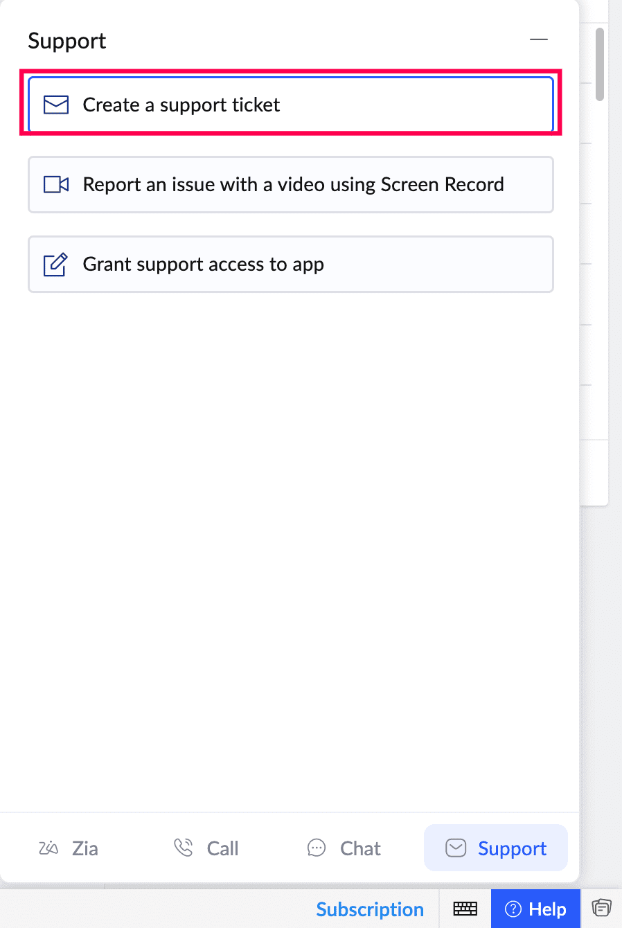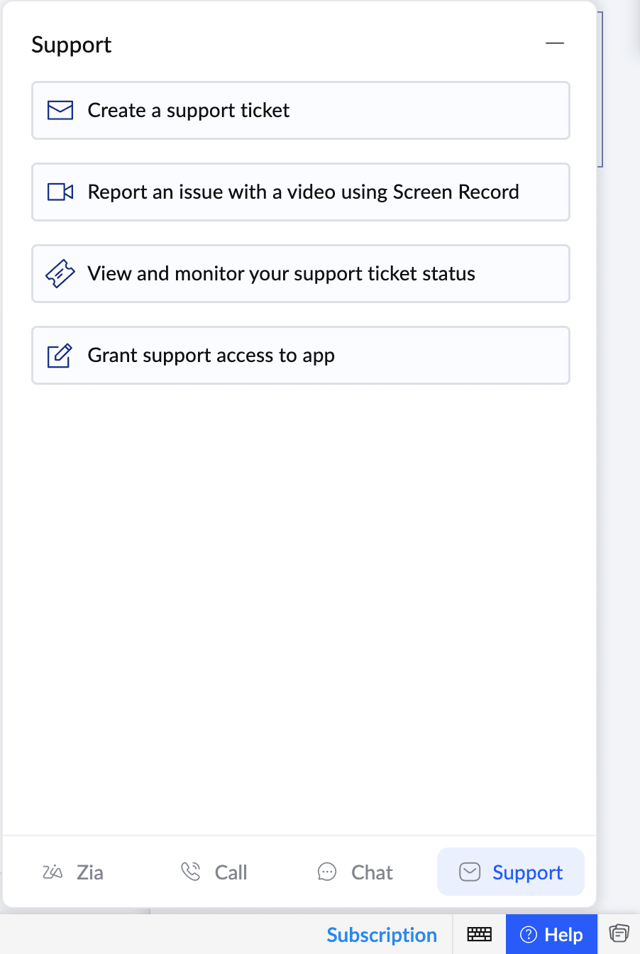In the built-in help widget, you have a Support option to report your problems, ask questions, provide feedback, track your support tickets, or give application edit access to the support team.