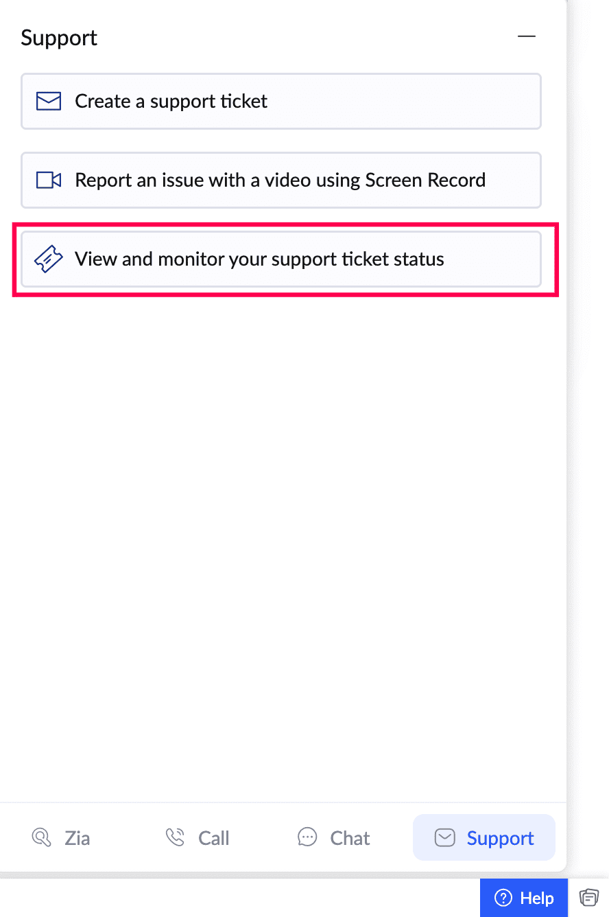 Track your support tickets - Track the status of your support tickets by clicking the View and monitor your support ticket status option under the Support section. Once you've created the ticket, you can conveniently monitor the support tickets you have submitted from here.