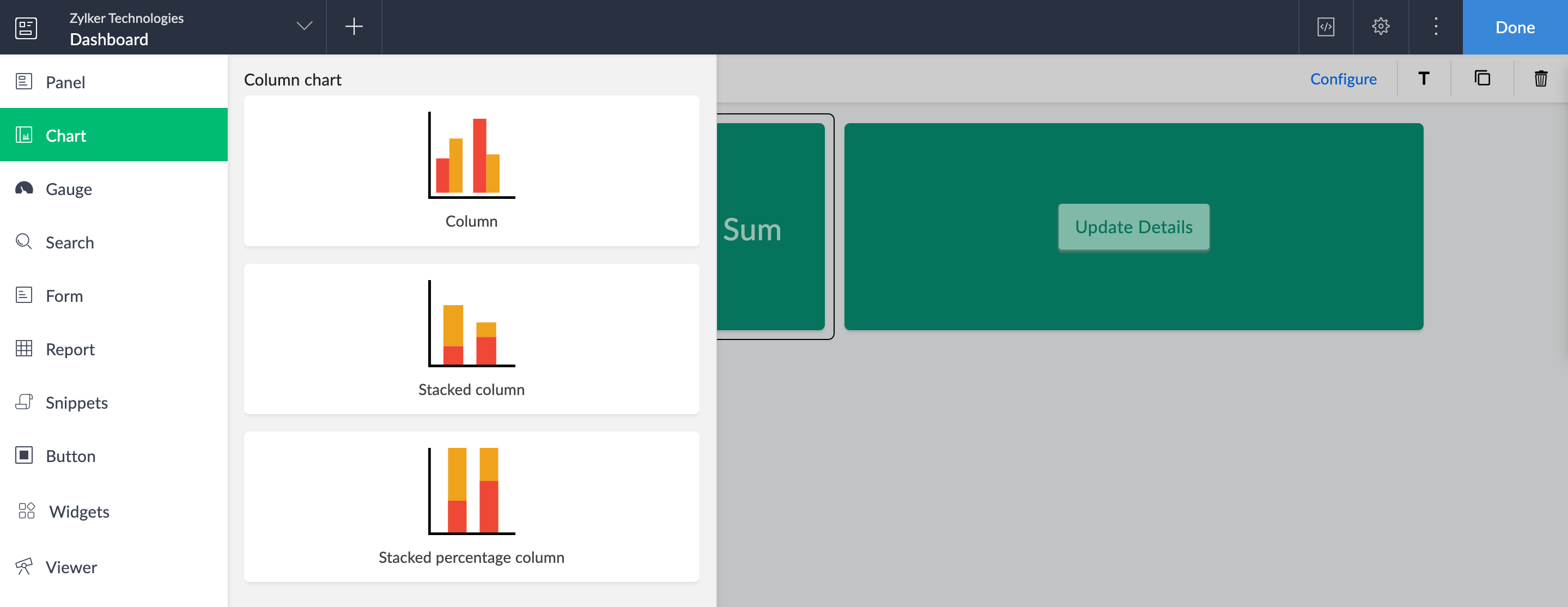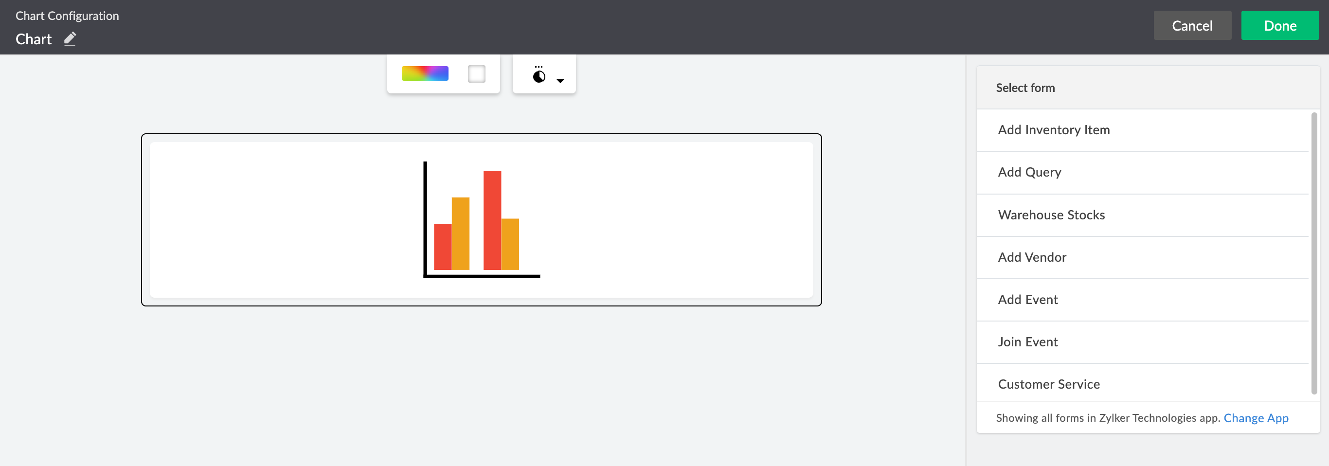 You can preview the configured chart by clicking Preview at the top right of the Chart Configuration pane, or click Done to save the configuration.