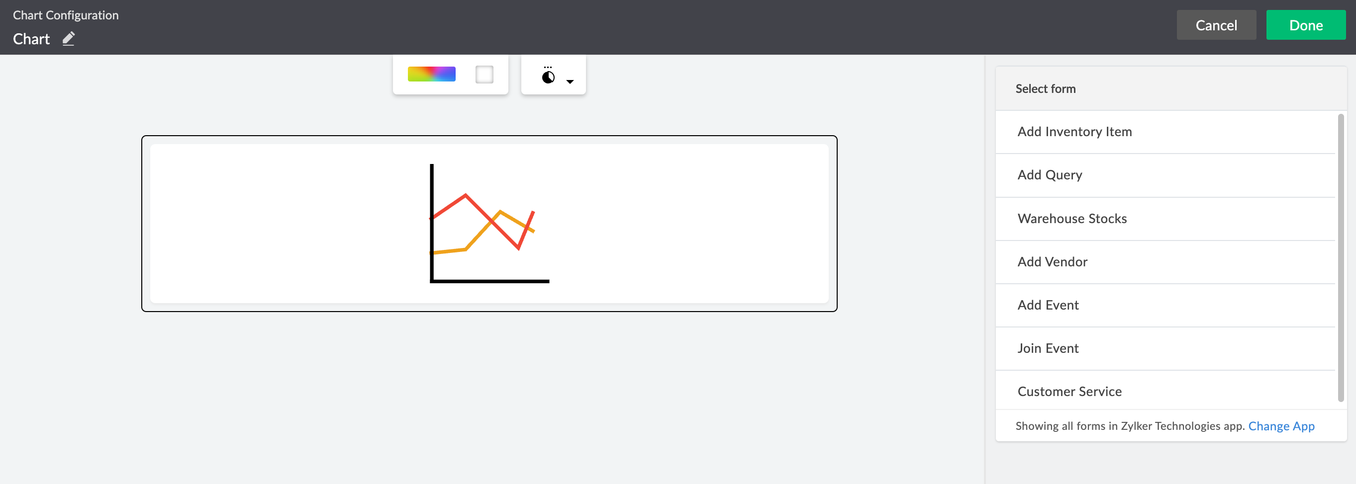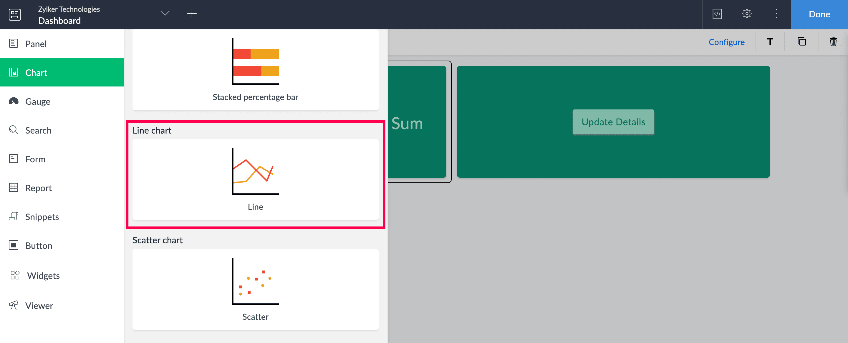 You can preview the configured chart by clicking Preview at the top right of the Chart Configuration pane, or click Done to save the configuration.
