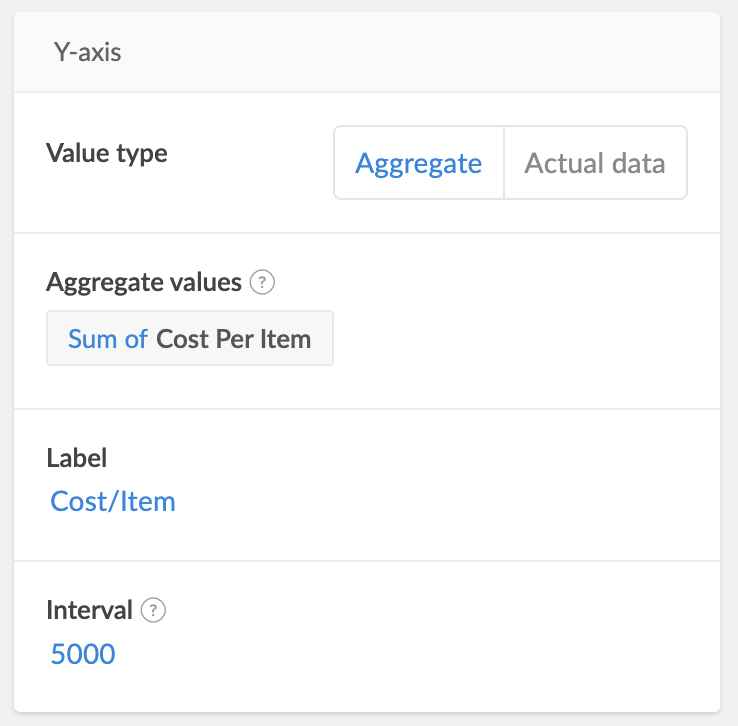 - Sum of the values of a Number, Percent, Currency, Decimal, Formula, Prediction, or OCR field chosen for the Y-axis.