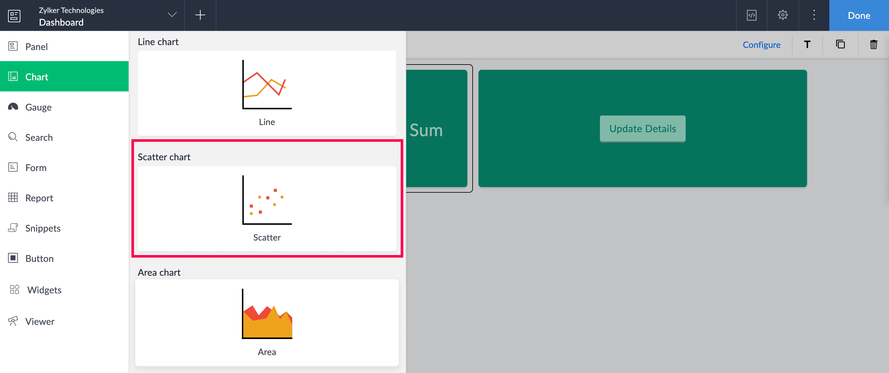 You can preview the configured chart by clicking Preview at the top right of the Chart Configuration pane, or click Done to save the configuration.
