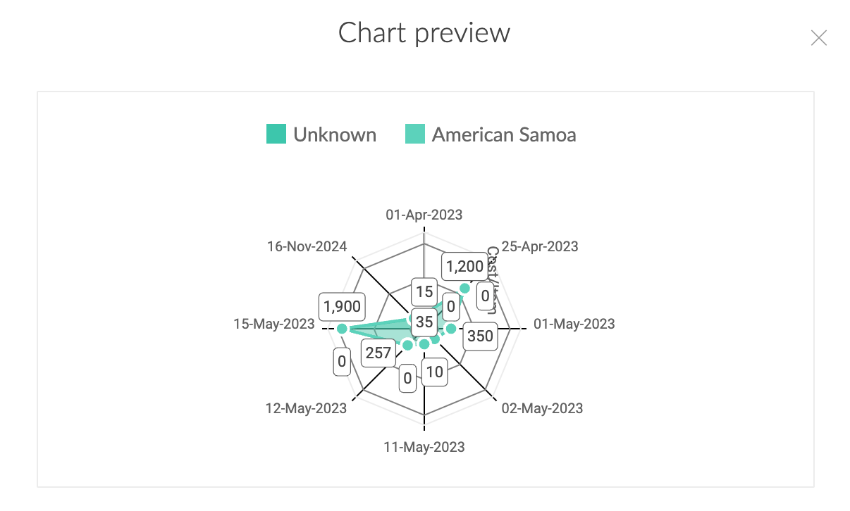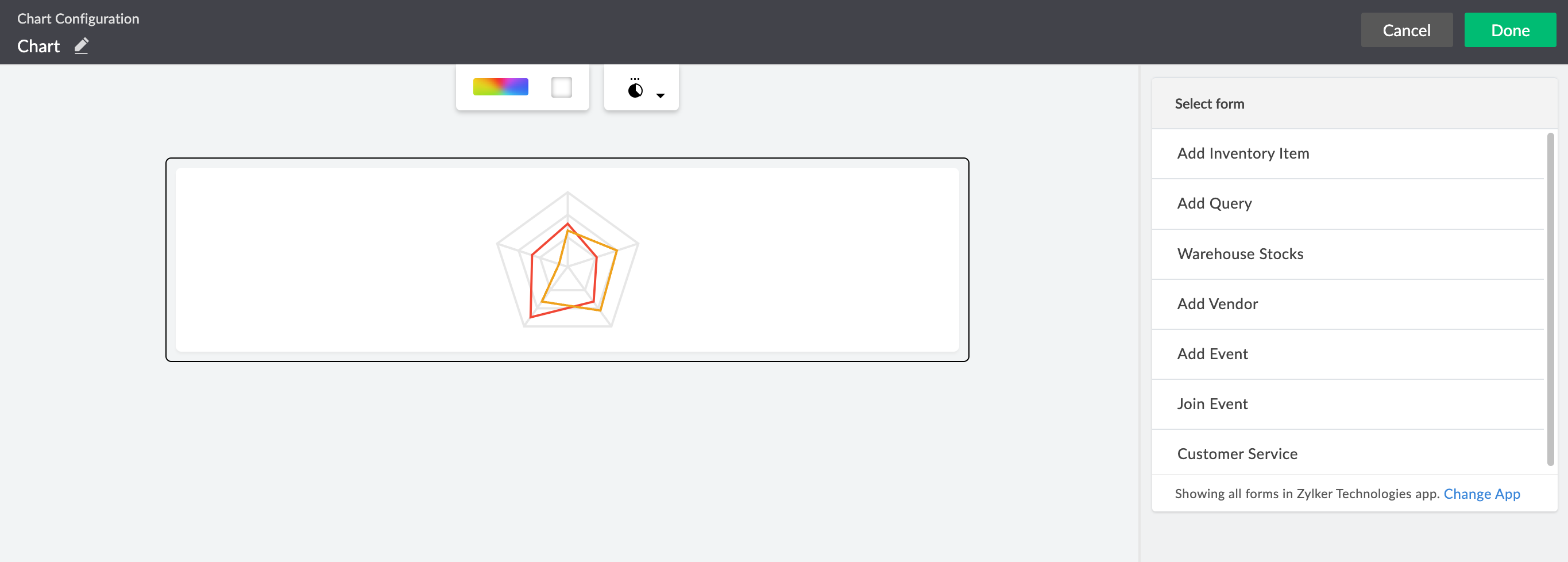 You can preview the configured chart by clicking Preview at the top right of the Chart Configuration pane, or click Done to save the configuration.