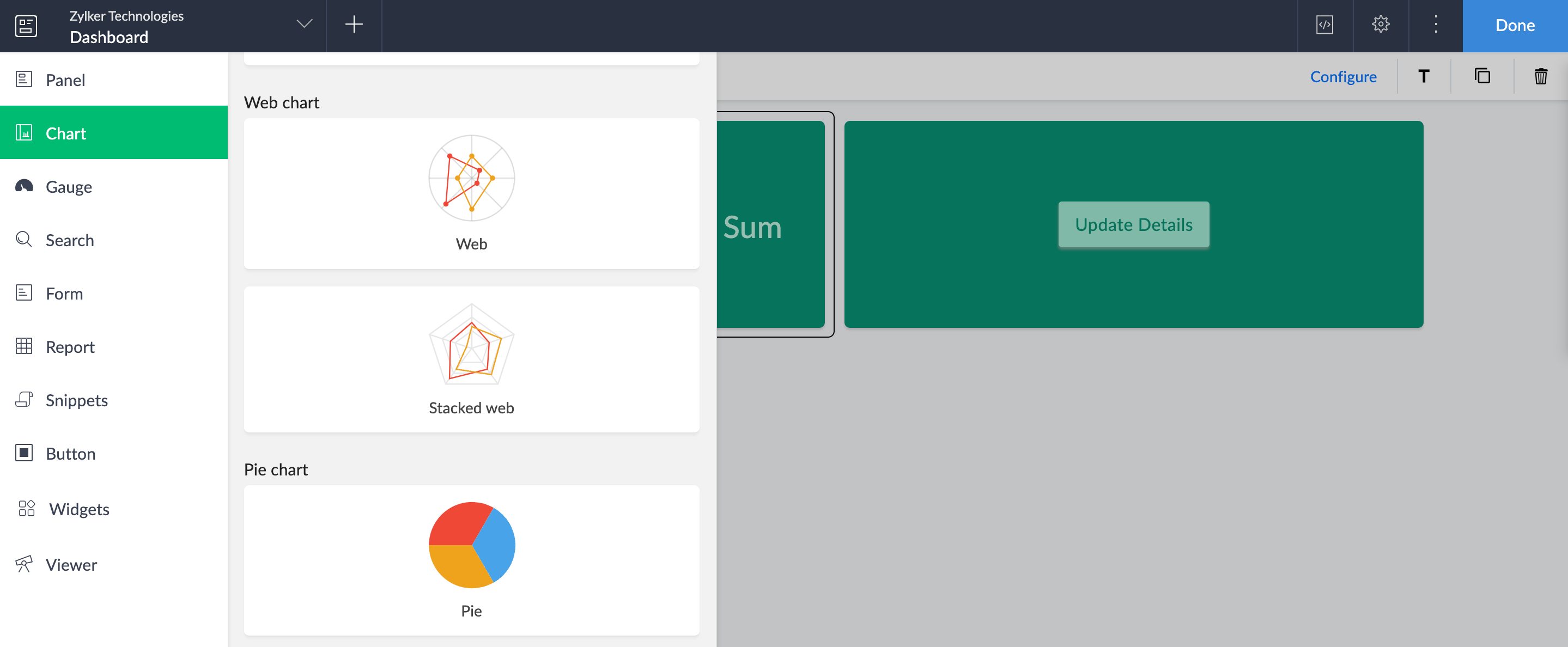 3. Drag and drop a web chart from the chart gallery. The