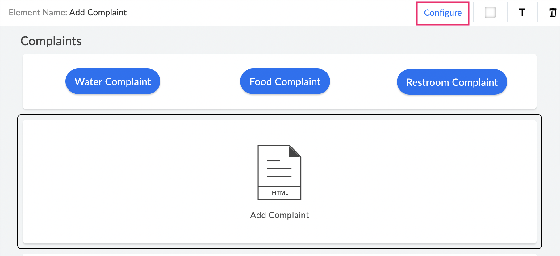 8. Repeat the above steps 3-6 for the other two buttons Food Complaint and Restroom Complaint.