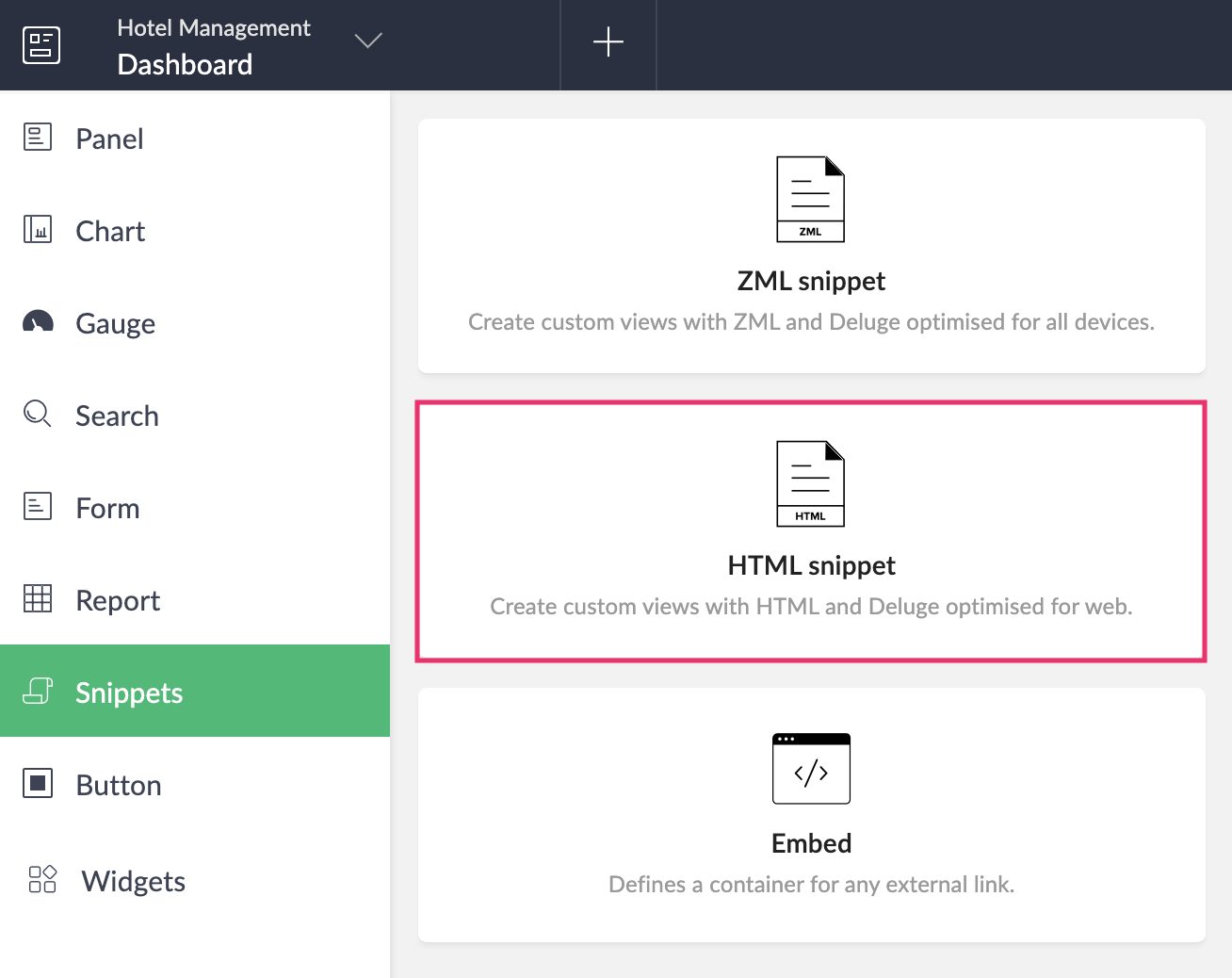 3. Drag and drop an HTML snippet onto the builder. Its configuration pane will slide in from the right.