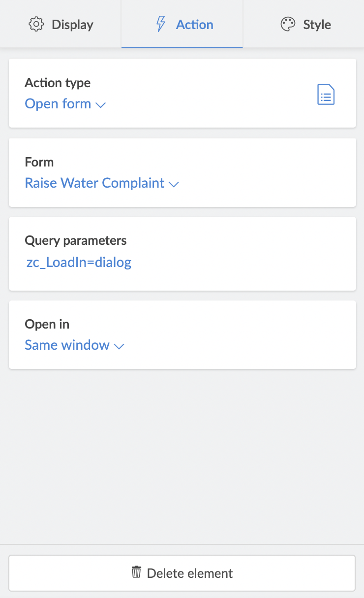 When you access your page in the live app, the Add Complaints form will be displayed in the HTML snippet container. When a user clicks the button Raise Water Complaint, the respective complaint form will load in the same HTML snippet container.