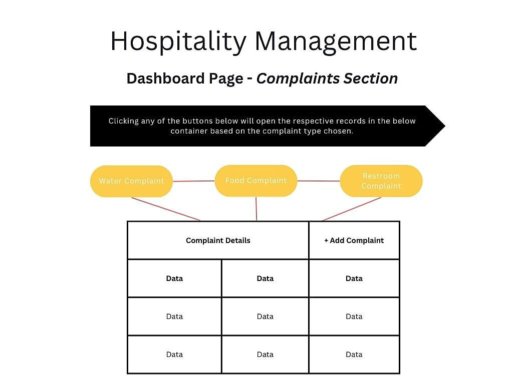 When you access your Dashboard page in the live app, the Complaint Details report will be displayed in the HTML snippet container. Users can click any of the buttons—Water Complaint, Food Complaint, Restroom Complaint—and the respective complaints details will load in the HTML snippet container.