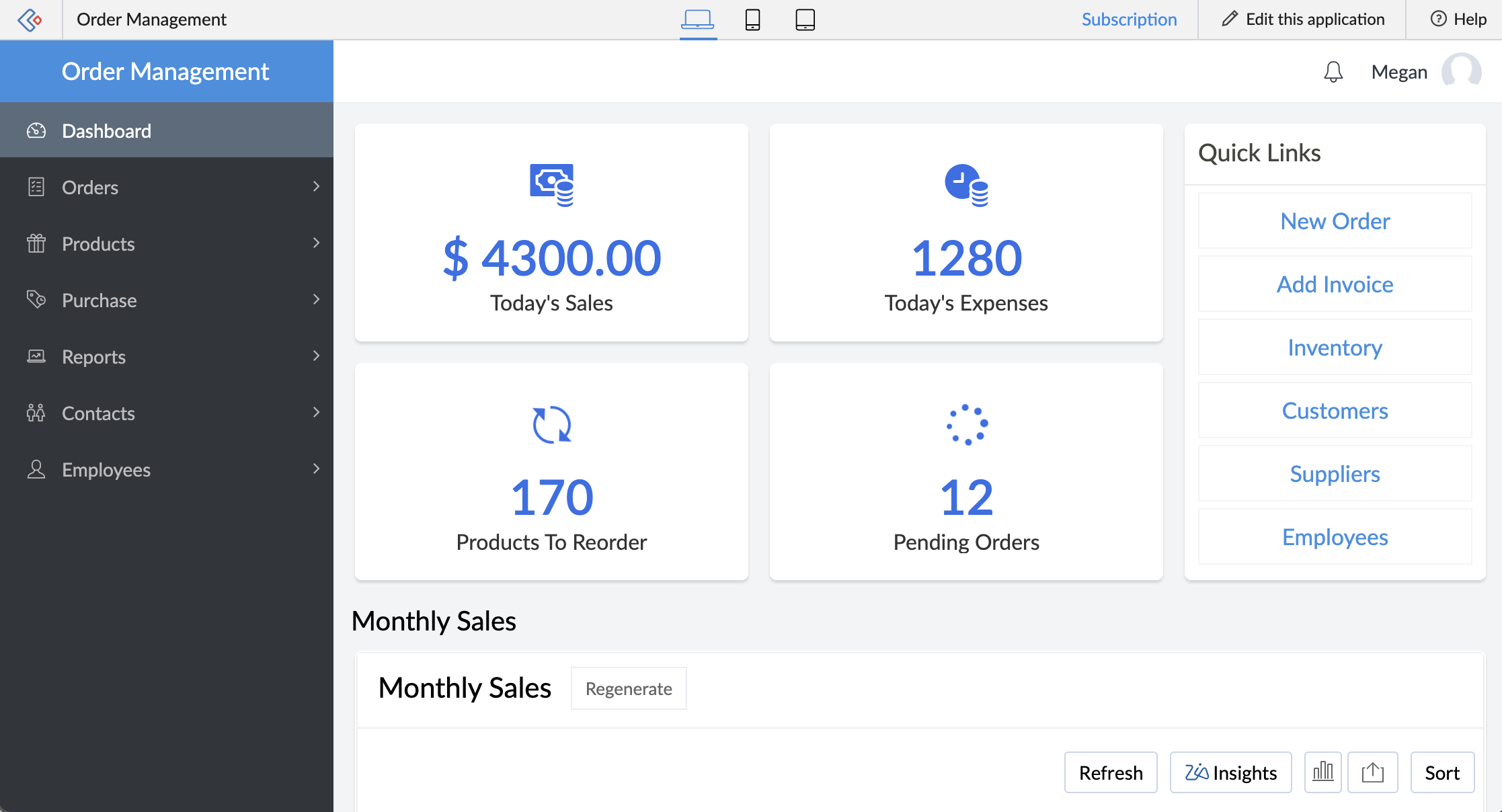 Imagine you've created an application called Order Management. In this application, you have designed a page titled Dashboard that displays the total amount earned from all the orders fulfilled on a particular day.