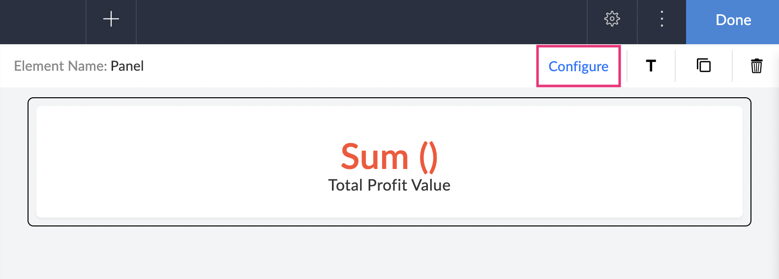 - In case you are editing an existing panel, click to select the panel and click Configure at the top of the page builder.