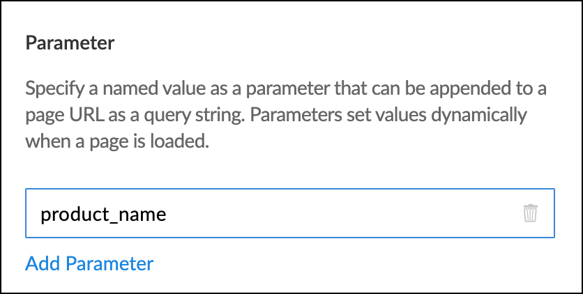 - As part of this process, add a page parameter in the target page with the field link name of the field in which the search is to be applied in the embedded report. For example, let us consider order management application with a list of product details such as Product Name, Image, and Specification in a report, and it is embedded in a page for configuring search bar. In the scenario where you aim to conduct searches based on the Product Name field, it is essential to add a page parameter. This parameter should bear the field link name of the said Product Name field, which in this case would be product_name.