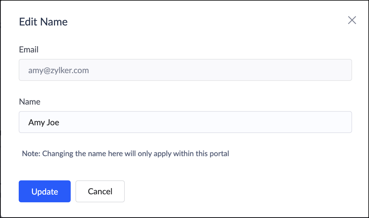 Portals in Zoho Creator allow external users to access your applications. A field called ‘Name’ will be provided, which can be updated later by the Super Admin and Admin. This is especially helpful for ensuring consistency or applying a preferred display name.