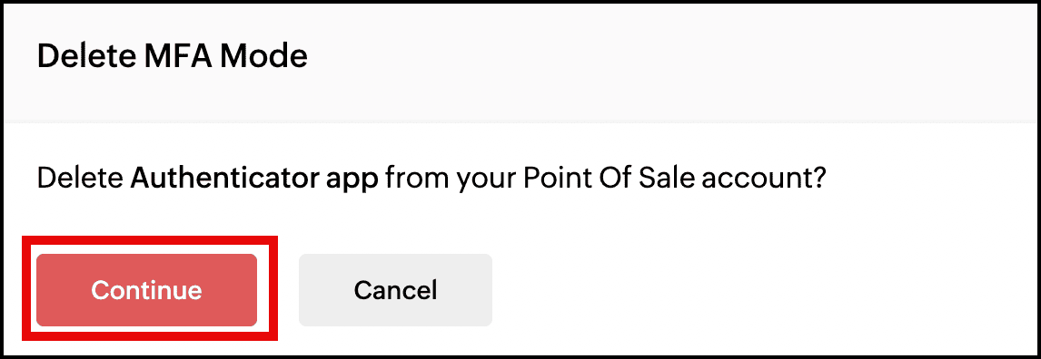 2. Click Continue in the Delete MFA Mode pop up to delete the configuration.