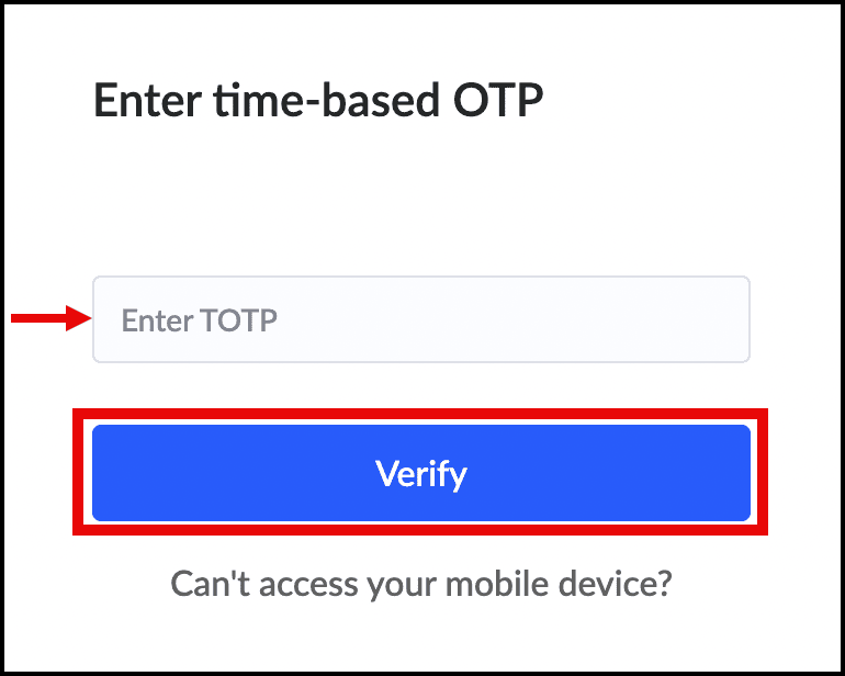 3. Enter the TOTP generated on your mobile authenticator app in the input box provided and then click Verify to sign in to your portal account.