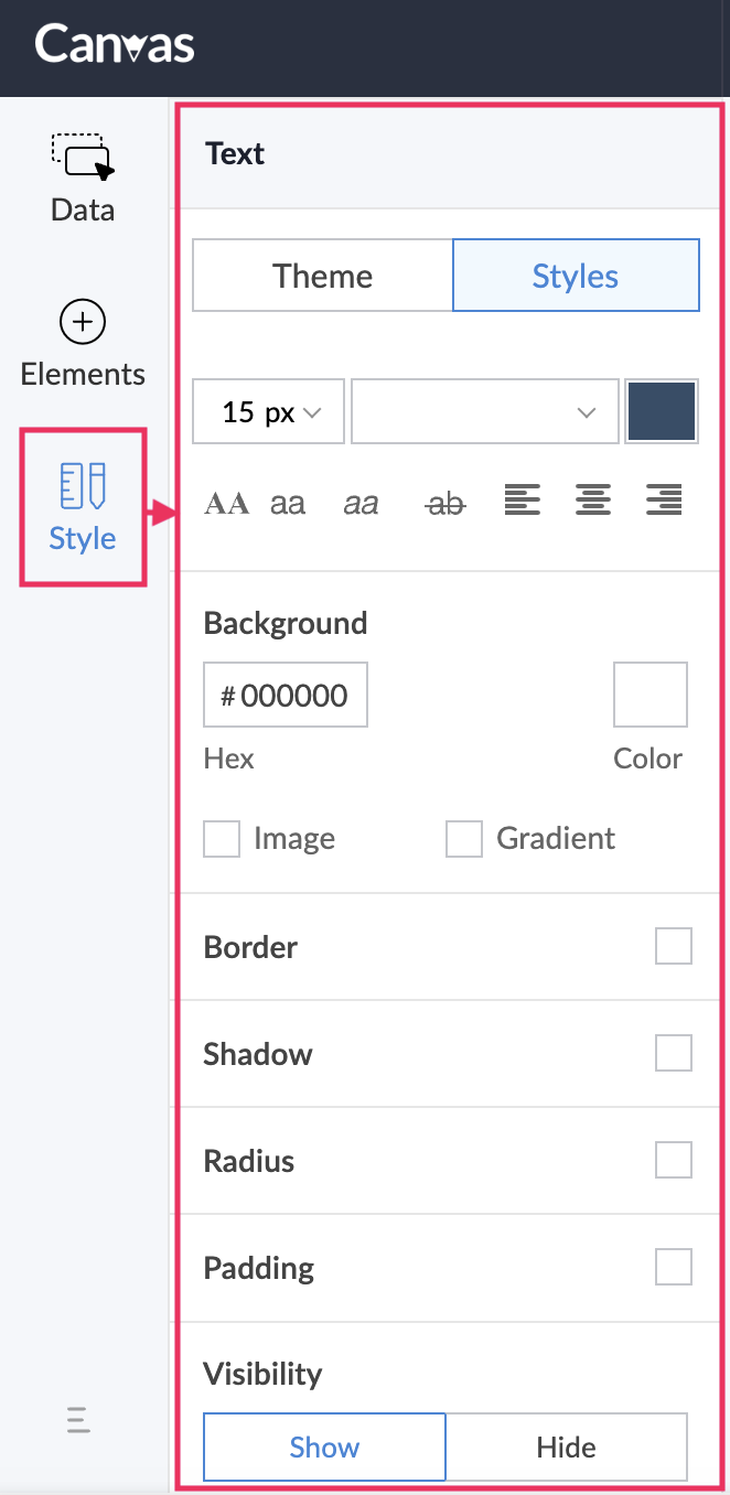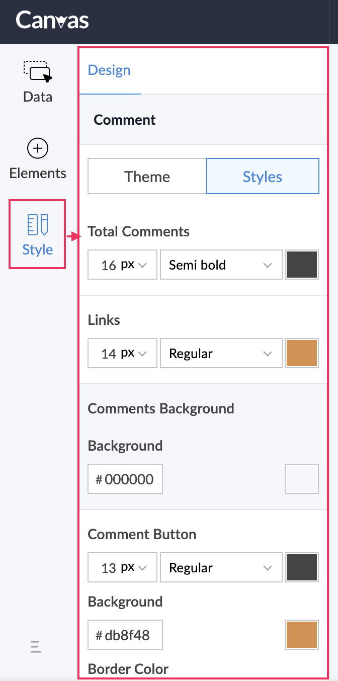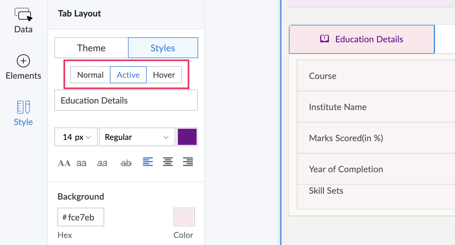 Style tab, you can either apply application based themes or use the style options provided inside our layout builder. You can:
