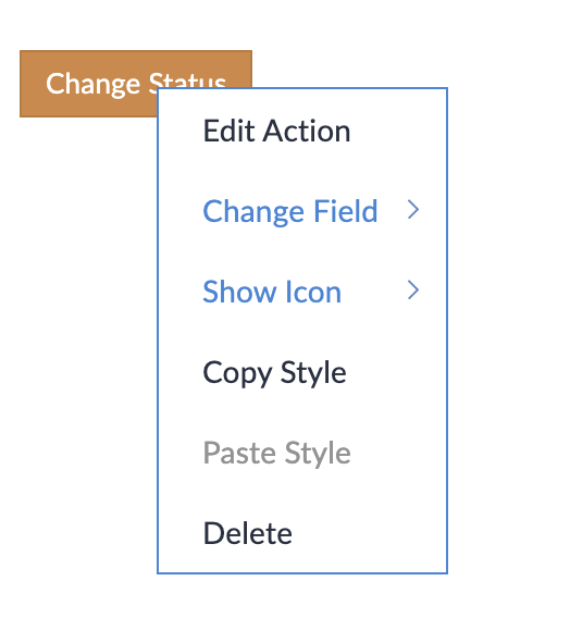 - Right-click on the button (custom action) to edit the action, change field, copy the style or paste from another style, or delete the action.