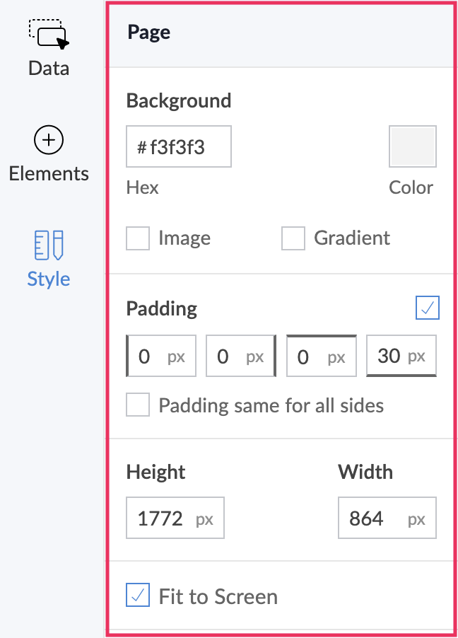 You can apply style from a myriad of options, such as background color, padding, field label alignment, border, and margin, to all components in the