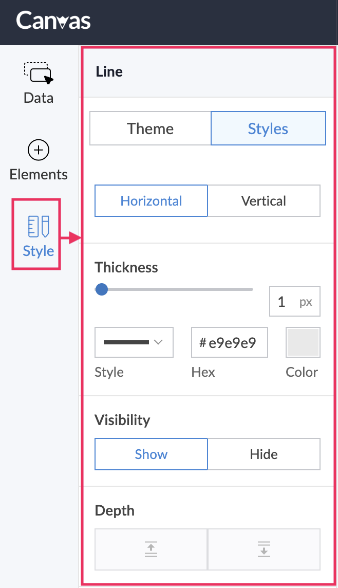 - Line: You can set the line to horizontal or vertical, and adjust the thickness, style, and color.