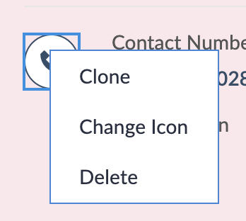 - Right-click to clone, make a component fixed or fluid, or delete the text box.