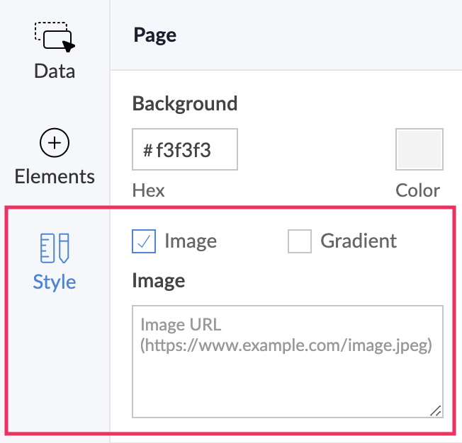 - Tick the Image checkbox and enter the URL of the image you want to add.