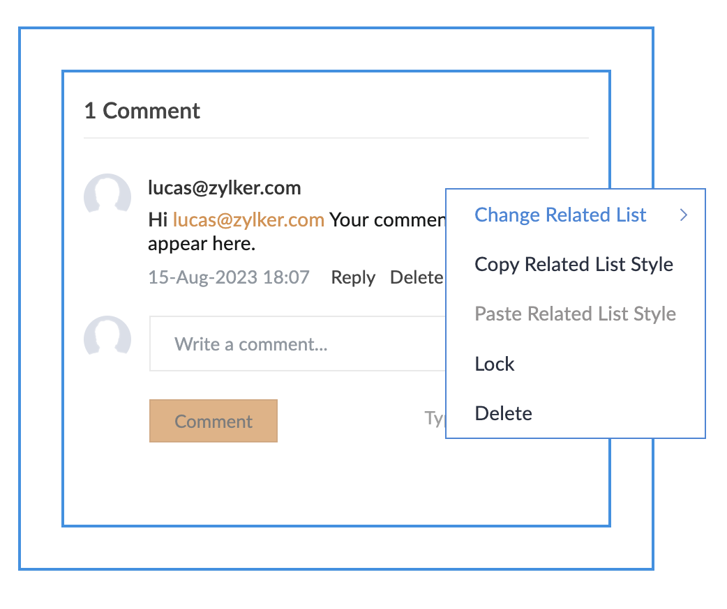 - Right-click on the record comment to change the related list, copy the style or paste from another style, or lock and delete the comment.
