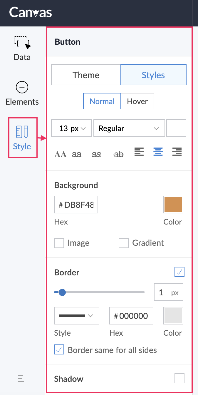 - You can reuse styles applied to components in the Data and Elements module. For example, the option to copy the style of a custom action button can be found under the right-click option. You can choose the Copy Style option and apply to the target element by right-clicking on it and choosing the Paste Style option.