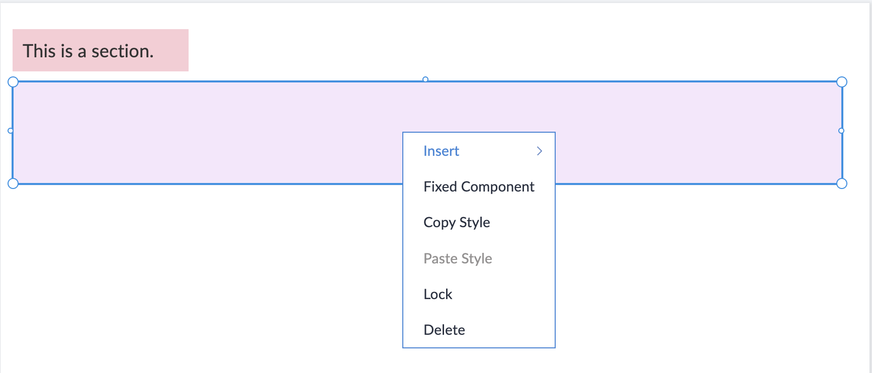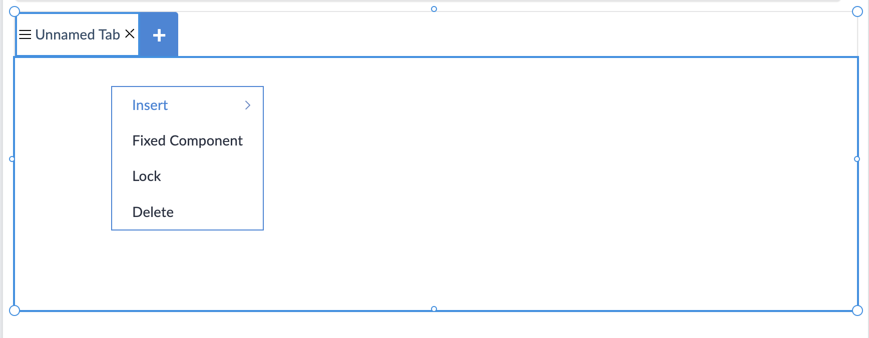 - Right-click inside the tab to insert fields, make the component fixed or fluid, copy and paste a style, lock it, delete it, and more.