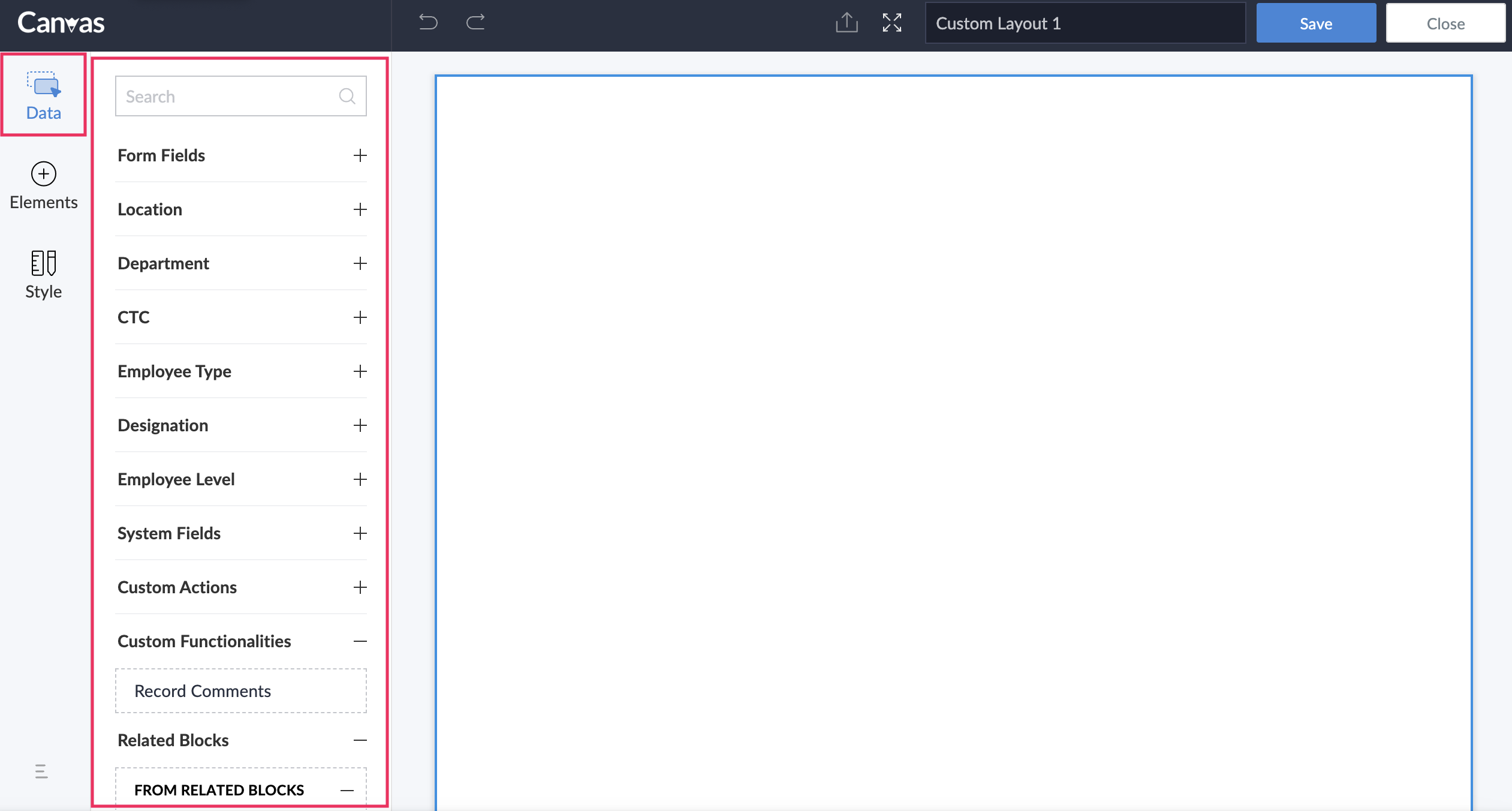 - Only the super admin, admins, and developers can design custom layouts using Canvas, while other users can access and view them with relevant permissions.