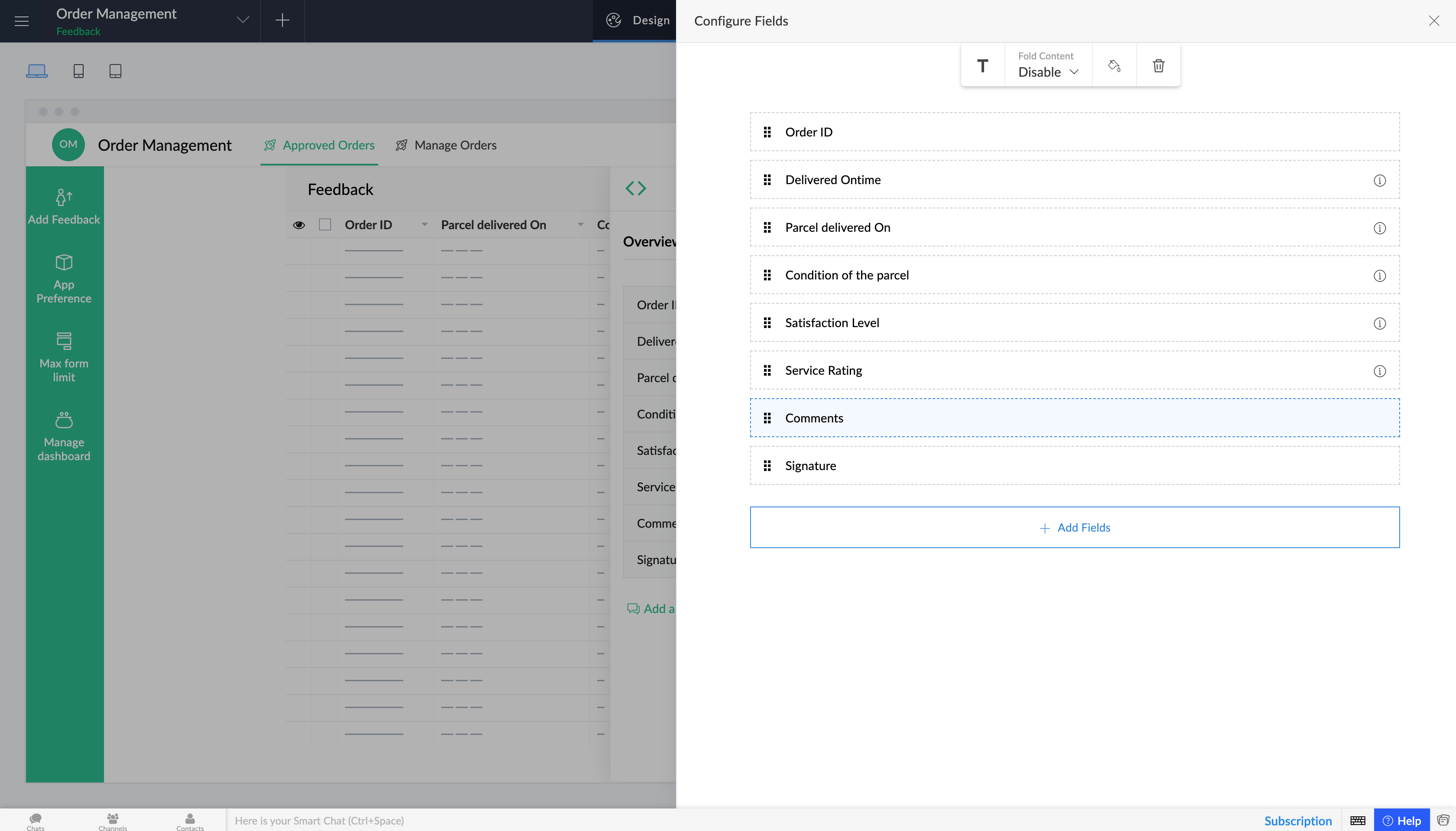 Note: If you haven't added a rich text or multiline field, click on the +Add Fields button to add them to appear in the report.