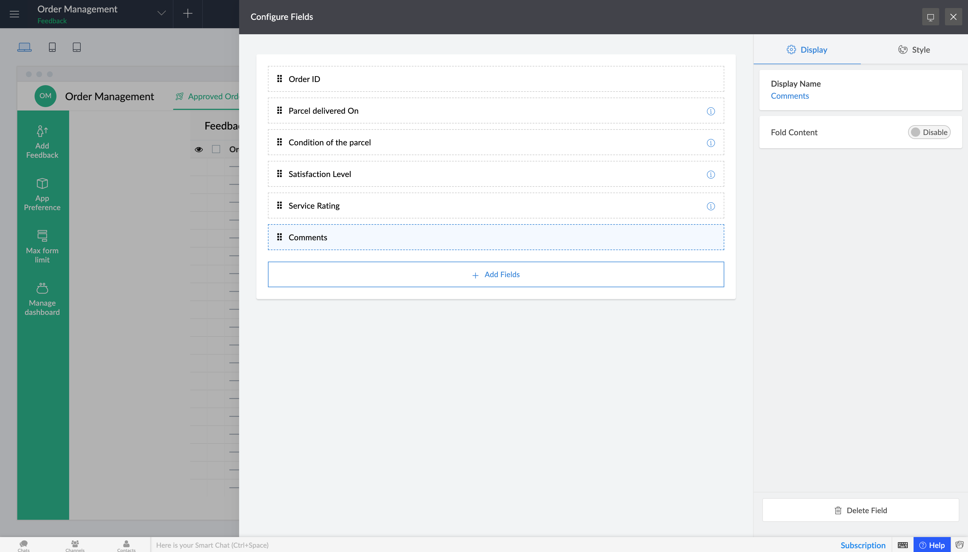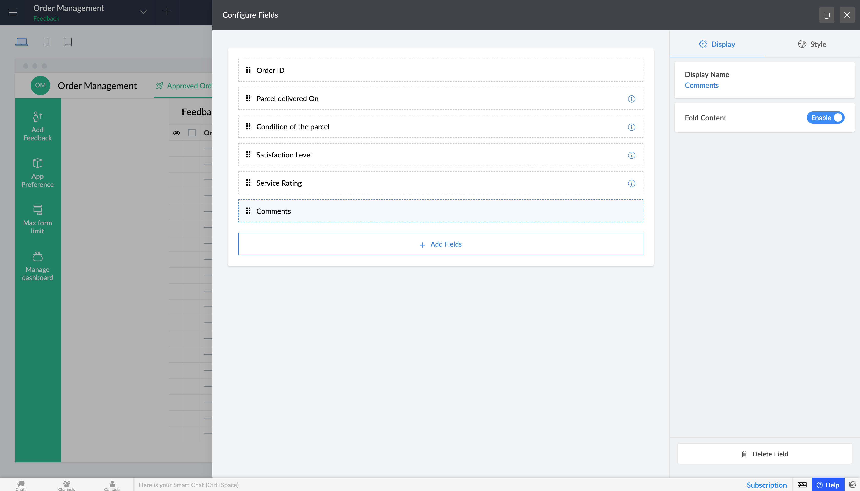 i. Select a rich text or multiline field from the fields section to enable fold content property for it. The