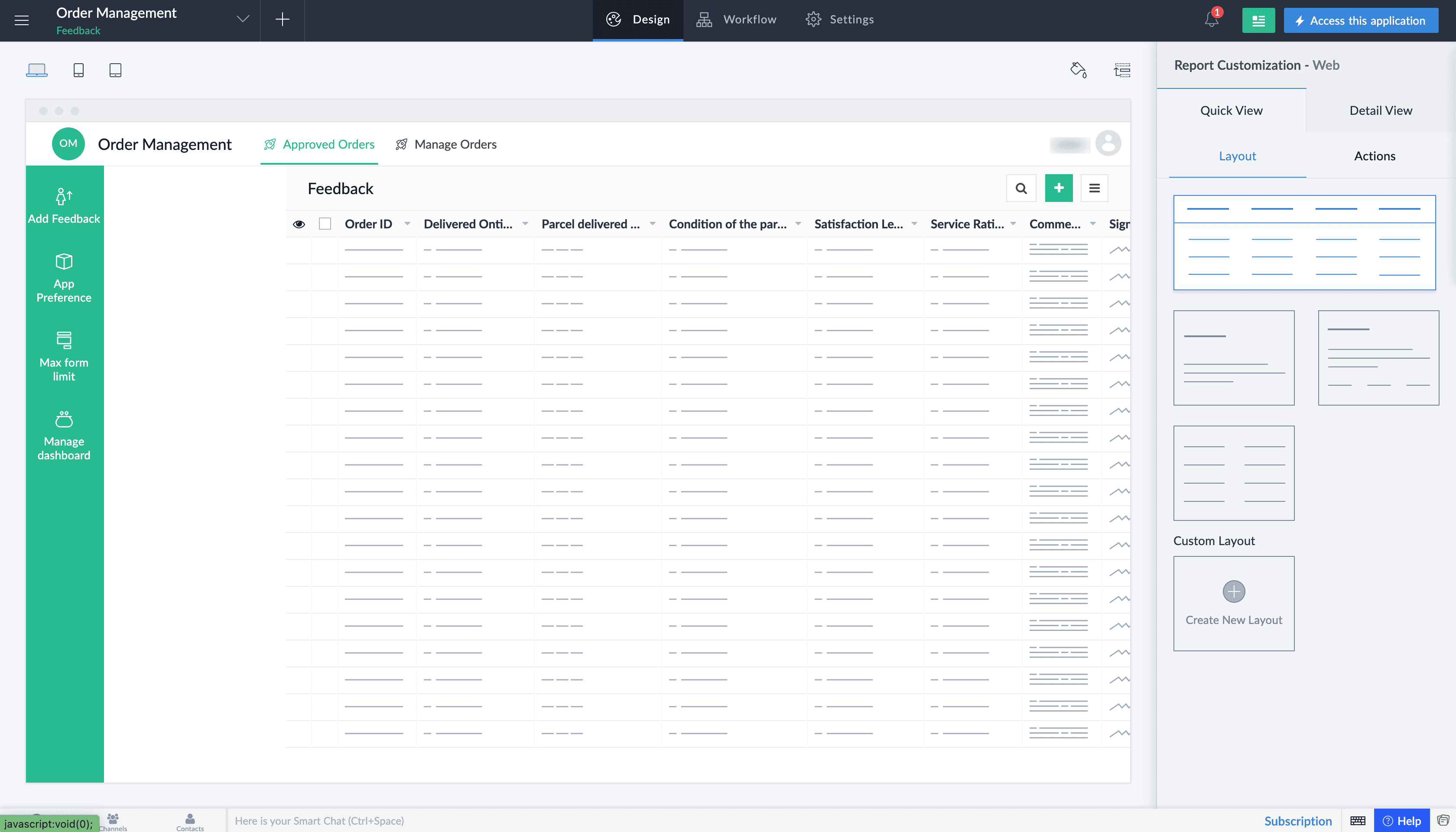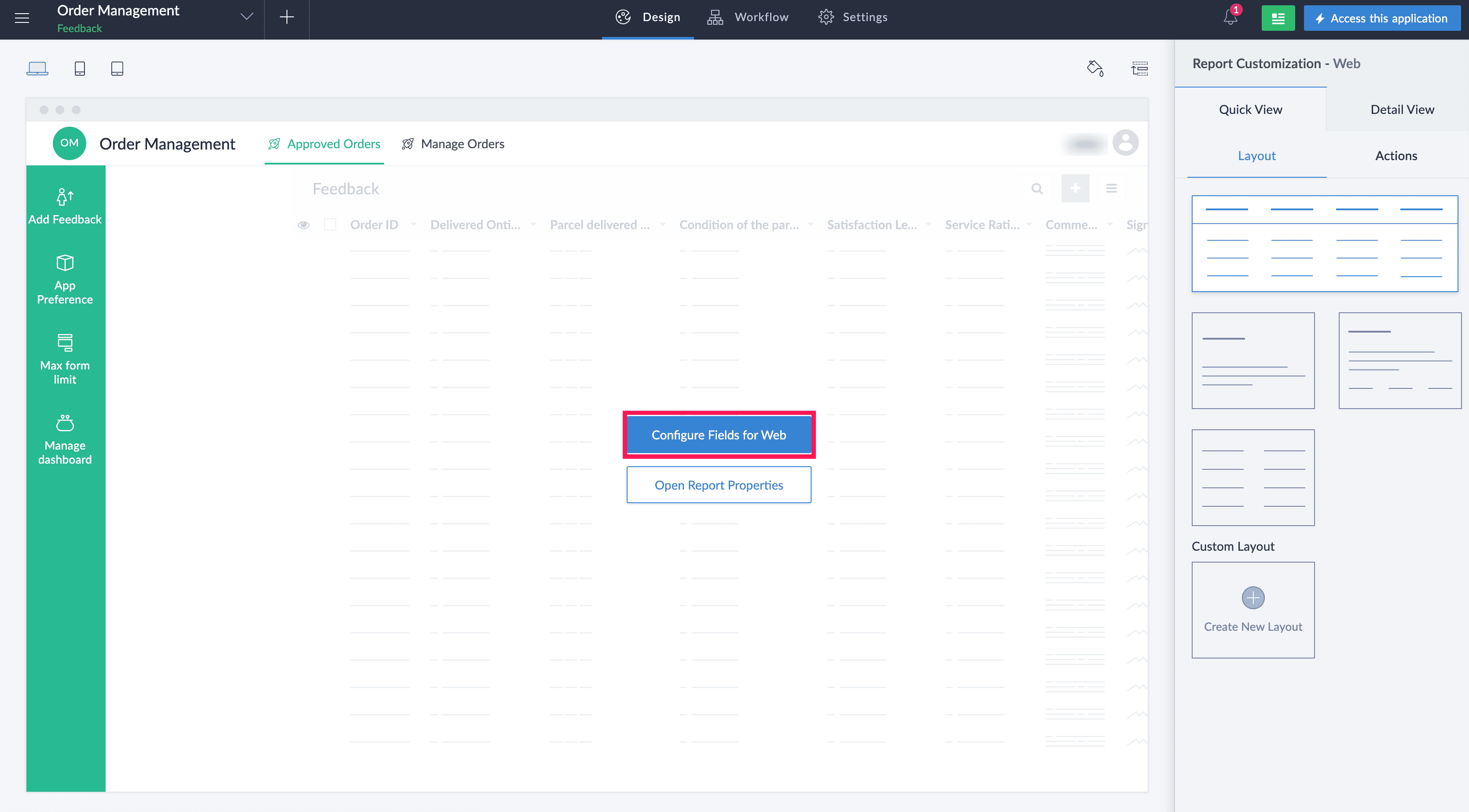 1. Navigate to the Design tab in the edit mode of the application after choosing the required report.