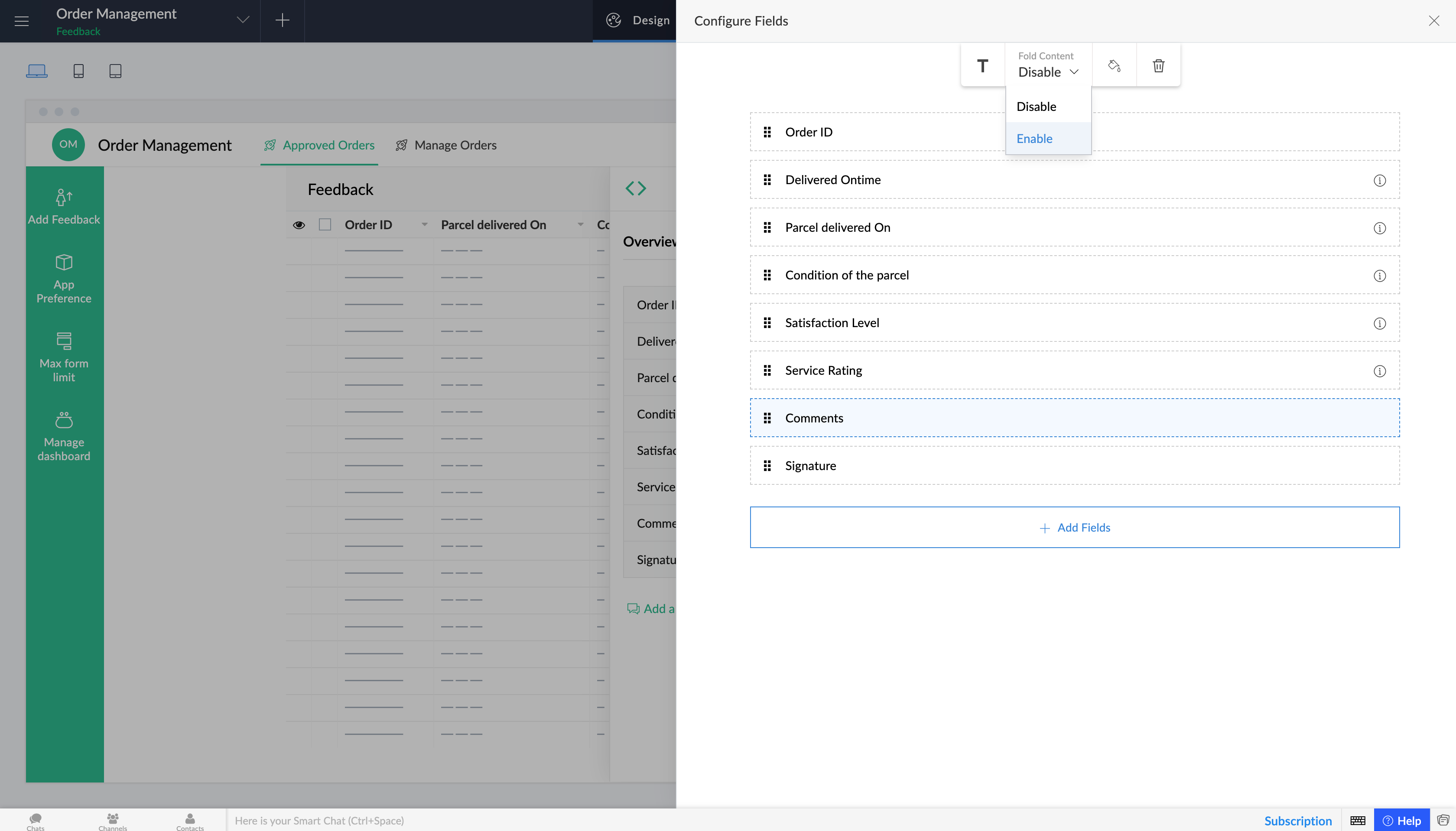 ii. Click the Fold Content dropdown present on the top of the window and choose Enable.
